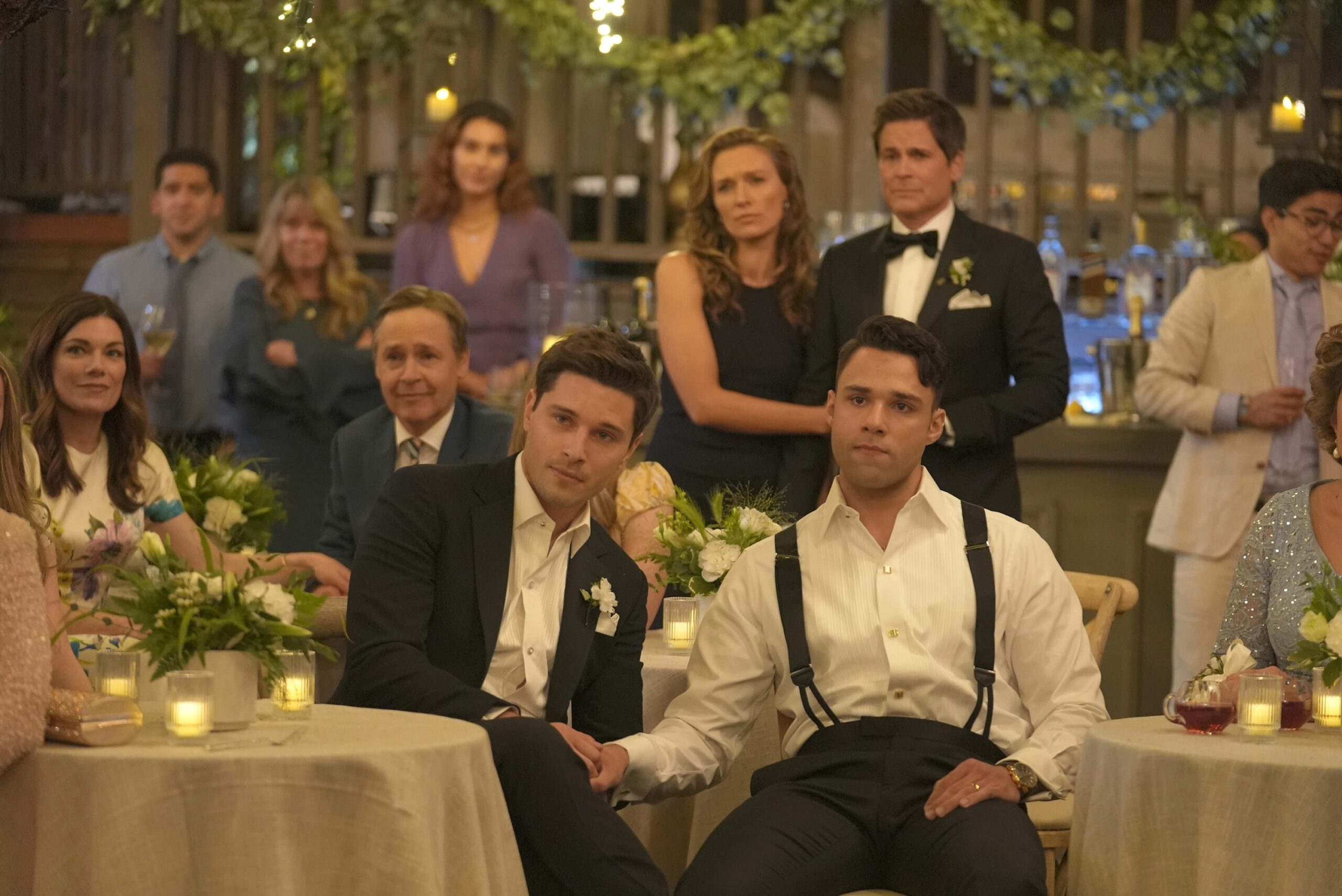 Rob Lowe’s real-life brother Chad Lowe plays Owen’s brother Robert and it’s time for a “Tarlos” wedding in the two-hour Season 4 finale of 9-1-1: Lone Star airing May 16. Here’s how the episodes are described; a gallery of photos and a list of guest stars can be found below.