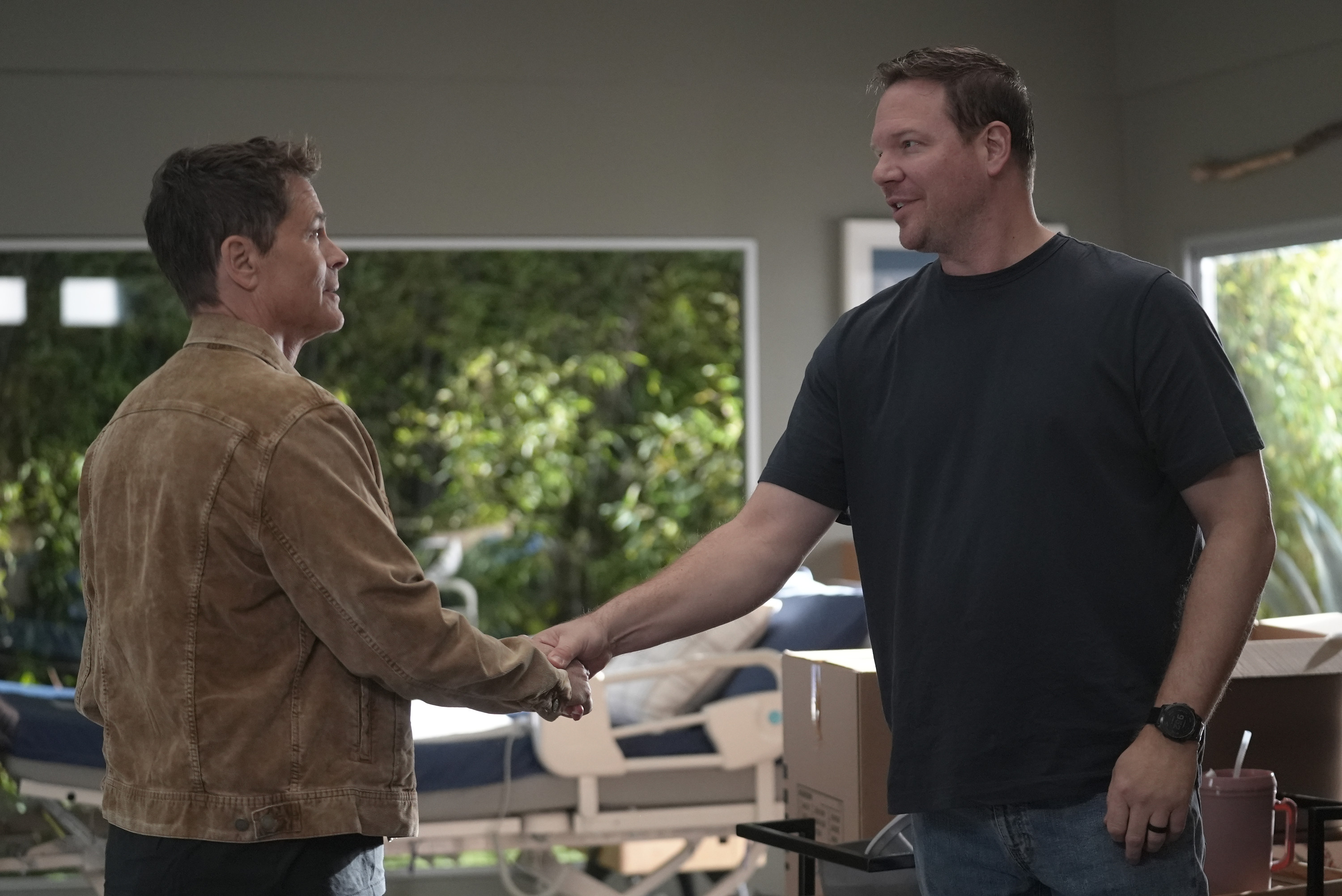 9-1-1 LONE STAR: L-R: Rob Lowe and Jim Parrack in the "Both Sides, Now" season premiere episode of 9-1-1 LONE STAR airing Monday, Sept 23 (8:00-9:02 PM ET/PT) on FOX. © 2024 Fox Media LLC. CR: Kevin Estrada/FOX.CR: Kevin Estrada/FOX.