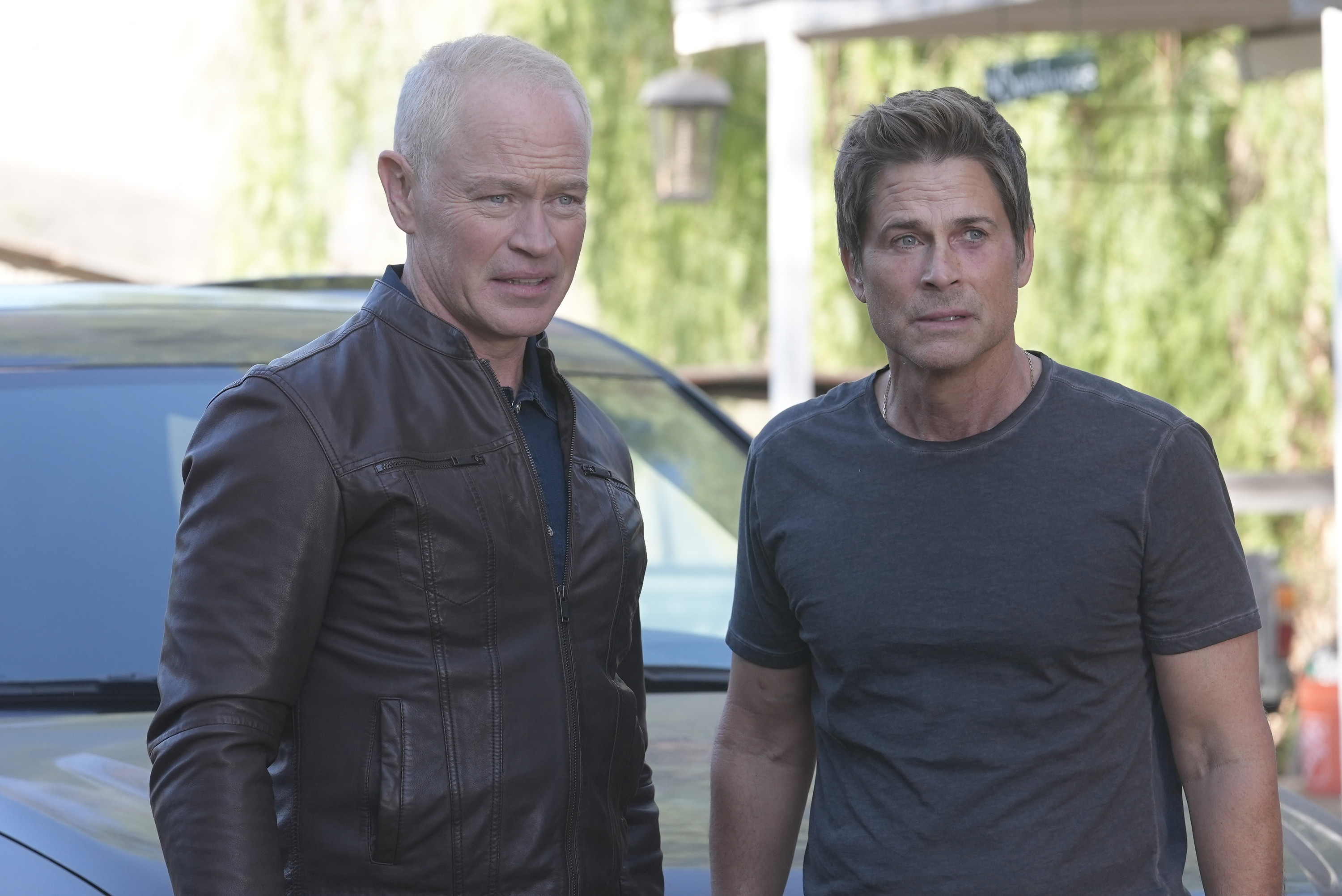 9-1-1 LONE STAR: L-R: Guest star Neal McDonough and Rob Lowe in the "Cry Wolf" episode of 9-1-1 LONE STAR airing Tuesday, Feb. 7 (8:00-9:00 PM ET/PT) on FOX.© 2023 Fox Media LLC. CR: Kevin Estrada/FOX.