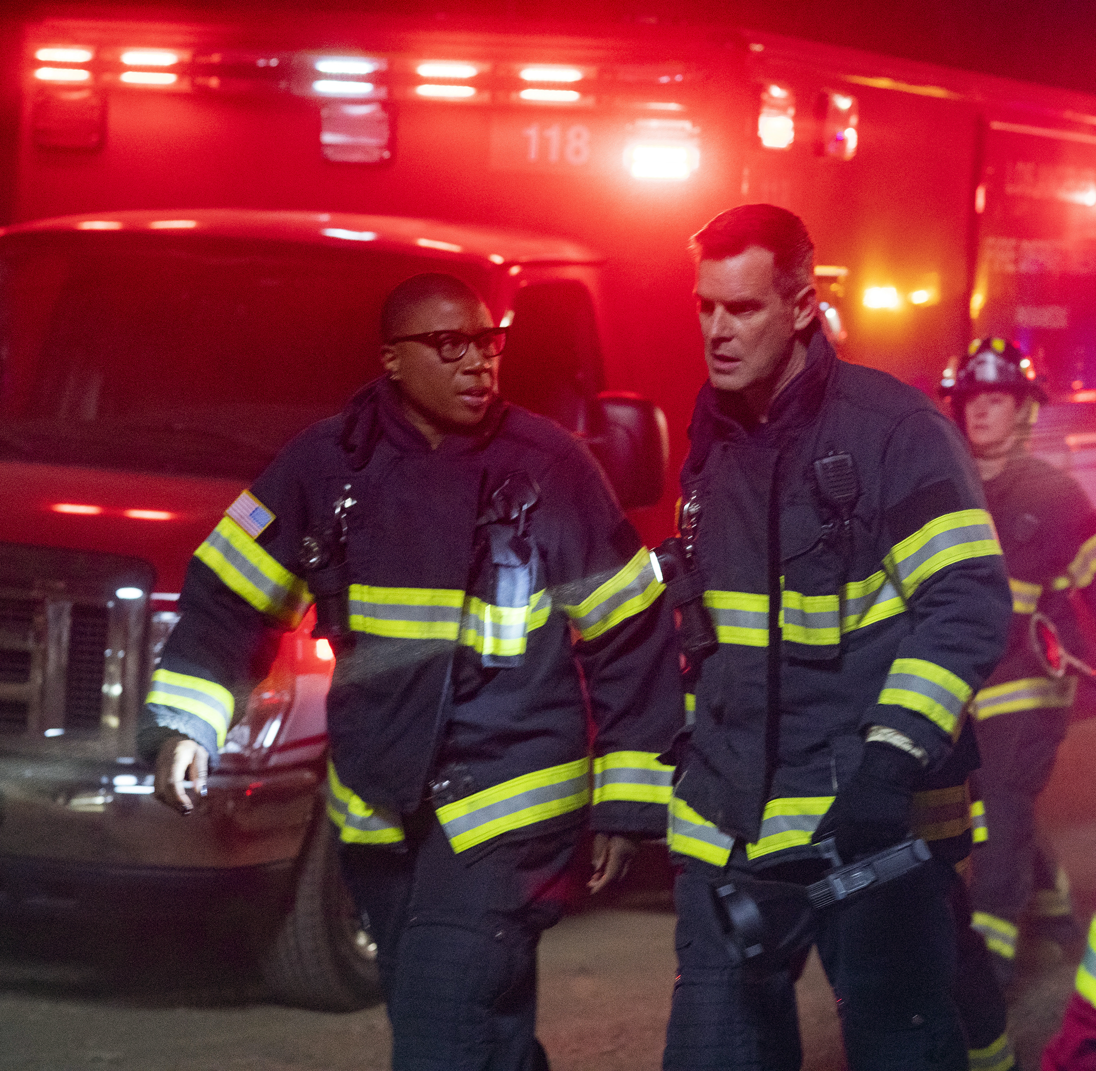 9-1-1: L-R: Aisha Hinds and Peter Krause in the “Ghost Stories” episode of 9-1-1 airing Monday, Nov. 8 (8:00-9:00 PM ET/PT) on FOX. CR: Jack Zeman / FOX.
