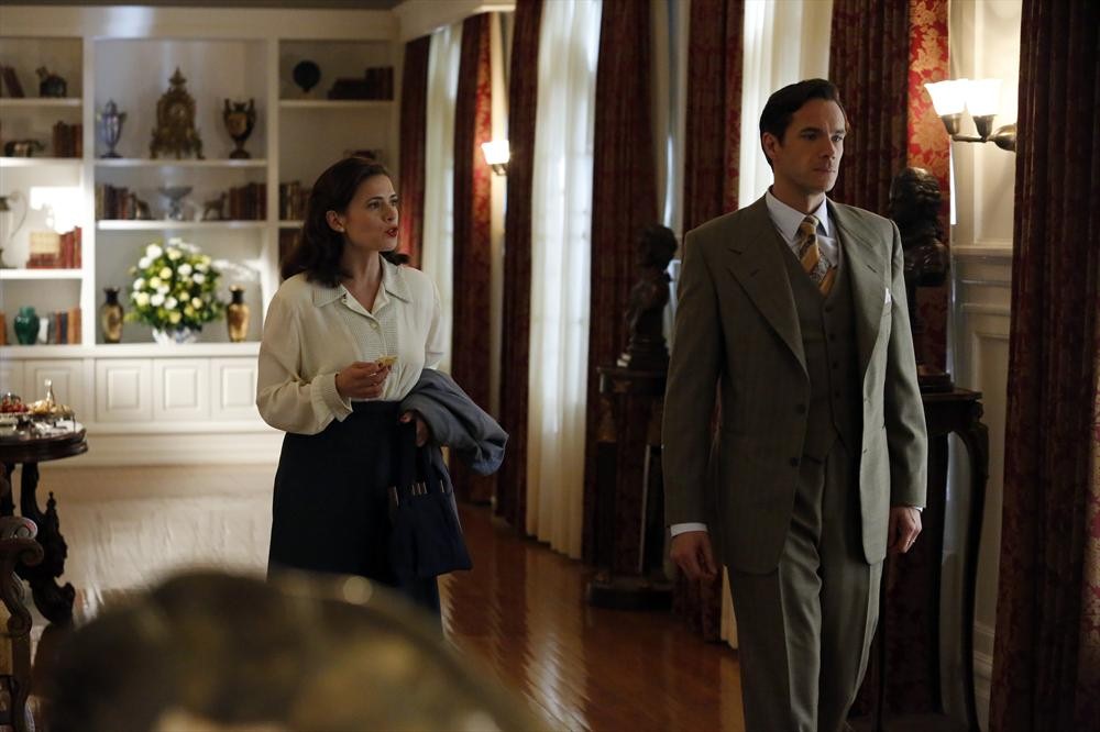 Marvel’s Agent Carter stars Hayley Atwell as Agent Peggy Carter, James D’Arcy as Edwin Jarvis, Chad Michael Murray as Agent Jack Thompson, Enver Gjokaj as Agent Daniel Sousa and Shea Whigham as Chief Roger Dooley.