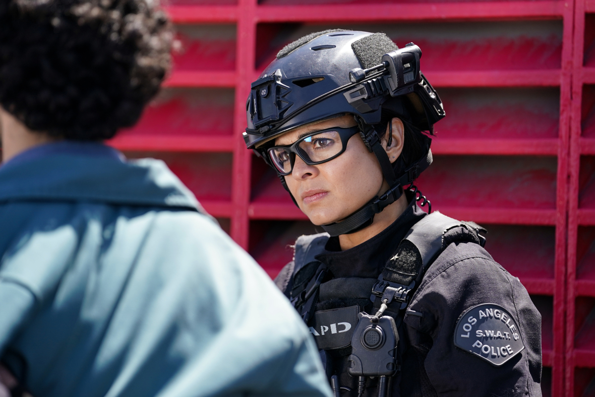 “Farewell” – When control of a university chemistry lab is seized, the SWAT team races to thwart a devastating terror attack, on the fifth season finale of the CBS Original series S.W.A.T., Sunday, May 22 (10:00-11:00 PM, ET/PT) on the CBS Television Network, and available to stream live and on demand on Paramount+*. Pictured (L-R): Lina Esco as Christina “Chris” Alonso. Photo: Bill Inoshita/CBS ©2022 CBS Broadcasting, Inc. All Rights Reserved.