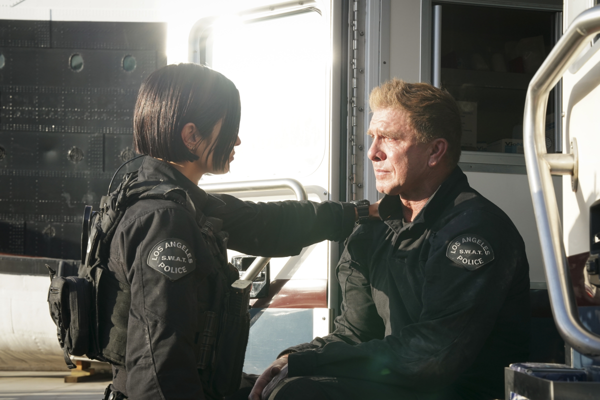 “Farewell” – When control of a university chemistry lab is seized, the SWAT team races to thwart a devastating terror attack, on the fifth season finale of the CBS Original series S.W.A.T., Sunday, May 22 (10:00-11:00 PM, ET/PT) on the CBS Television Network, and available to stream live and on demand on Paramount+*. Pictured (L-R): Lina Esco as Christina “Chris” Alonso and Kenneth “Kenny” Johnson as Dominique Luca. Photo: Bill Inoshita/CBS ©2022 CBS Broadcasting, Inc. All Rights Reserved.