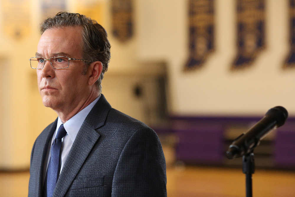 AMERICAN CRIME - "Season Two: Episode Eight" - In an episode that features interviews with real-life Columbine teachers, along with parents and victims of LGBT bullying, Leyland High School mourns the loss of one of their own, while Leslie finds her job on the line in the aftermath of the tragedy; Curt tries to file a missing person's report with the police when he suspects his estranged wife, Lilah, has run off with their son, Peter, after she blames him for son Eric's sexuality; Becca makes a startling confession to Dan; and Sebastian reaches out to Anne in an attempt to help her bring retribution to those who caused her son Taylor's downfall, on "American Crime," WEDNESDAY, FEBRUARY 24 (10:00-11:00 p.m. EST) on the ABC Television Network. (ABC/Ryan Green) TIMOTHY HUTTON