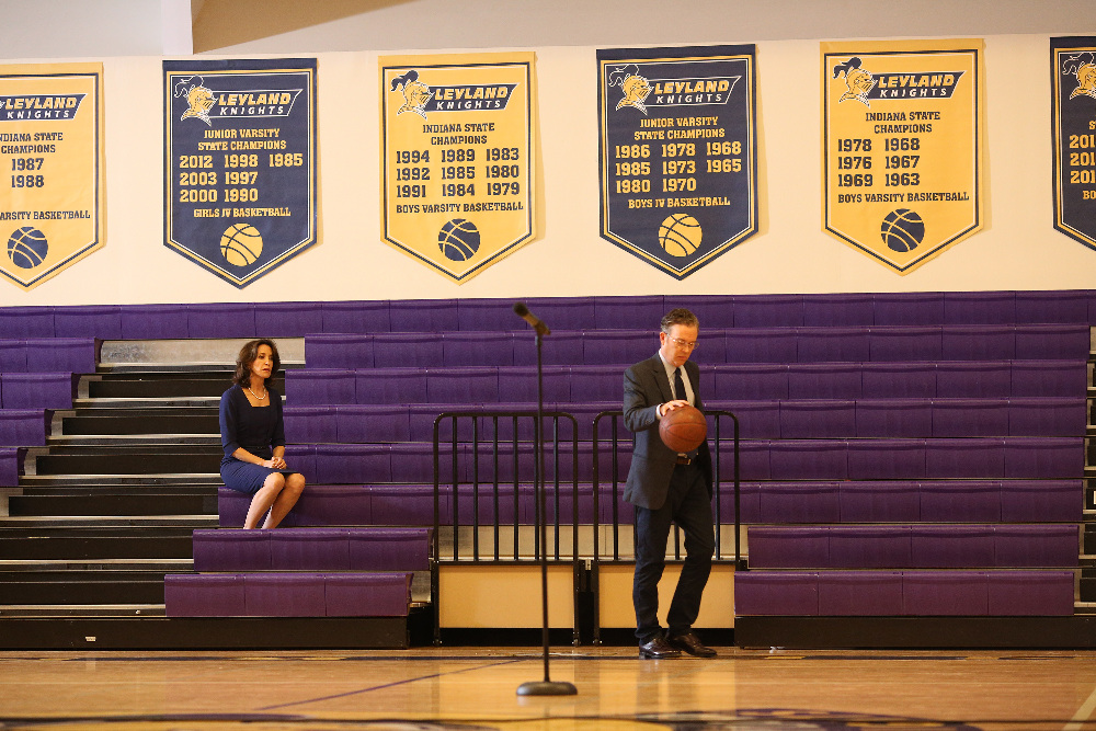 AMERICAN CRIME - "Season Two: Episode Eight" - In an episode that features interviews with real-life Columbine teachers, along with parents and victims of LGBT bullying, Leyland High School mourns the loss of one of their own, while Leslie finds her job on the line in the aftermath of the tragedy; Curt tries to file a missing person's report with the police when he suspects his estranged wife, Lilah, has run off with their son, Peter, after she blames him for son Eric's sexuality; Becca makes a startling confession to Dan; and Sebastian reaches out to Anne in an attempt to help her bring retribution to those who caused her son Taylor's downfall, on "American Crime," WEDNESDAY, FEBRUARY 24 (10:00-11:00 p.m. EST) on the ABC Television Network. (ABC/Ryan Green)FELICITY HUFFMAN, TIMOTHY HUTTON