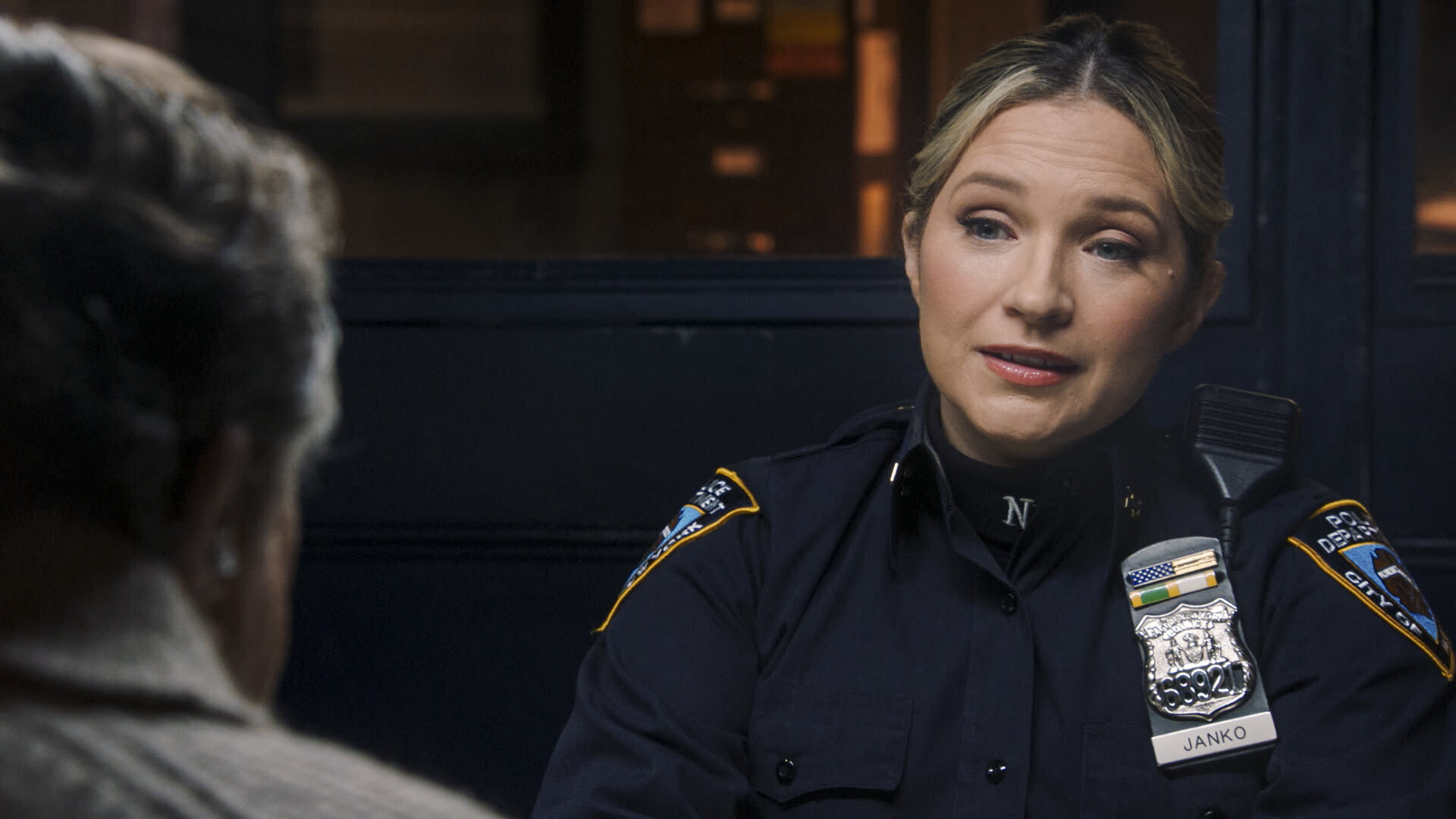 “Family Matters” – Danny and Baez investigate a case of grand larceny tied to feuding crime families when the gifts are stolen during a mob wedding. Also, Frank clashes with Mayor Chase (Dylan Walsh) when an influx of immigrants arrive in the city; Erin questions whether her district attorney campaign is compromising her day job; and Eddie enlists Jamie’s help to bust a drug dealer responsible for fentanyl overdoses in order to comfort a grieving grandfather (Larry Manetti), on BLUE BLOODS, Friday, April 21 (10:00-11:00 PM, ET/PT) on the CBS Television Network, and available to stream live and on demand on Paramount+*. Pictured: Vanessa Ray as Officer Eddie Janko. Photo: CBS ©2023 CBS Broadcasting, Inc. All Rights Reserved. Highest quality screengrab available.