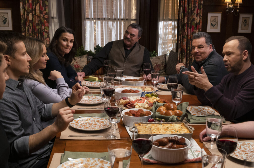 Blue Bloods stars Tom Selleck (Frank Reagan), Donnie Wahlberg (Danny Reagan), Bridget Moynahan (Erin Reagan), Will Estes (Jamie Reagan), Len Cariou (Henry Reagan), Marisa Ramirez (Det. Maria Baez), and Vanessa Ray (Officer Eddie Janko).