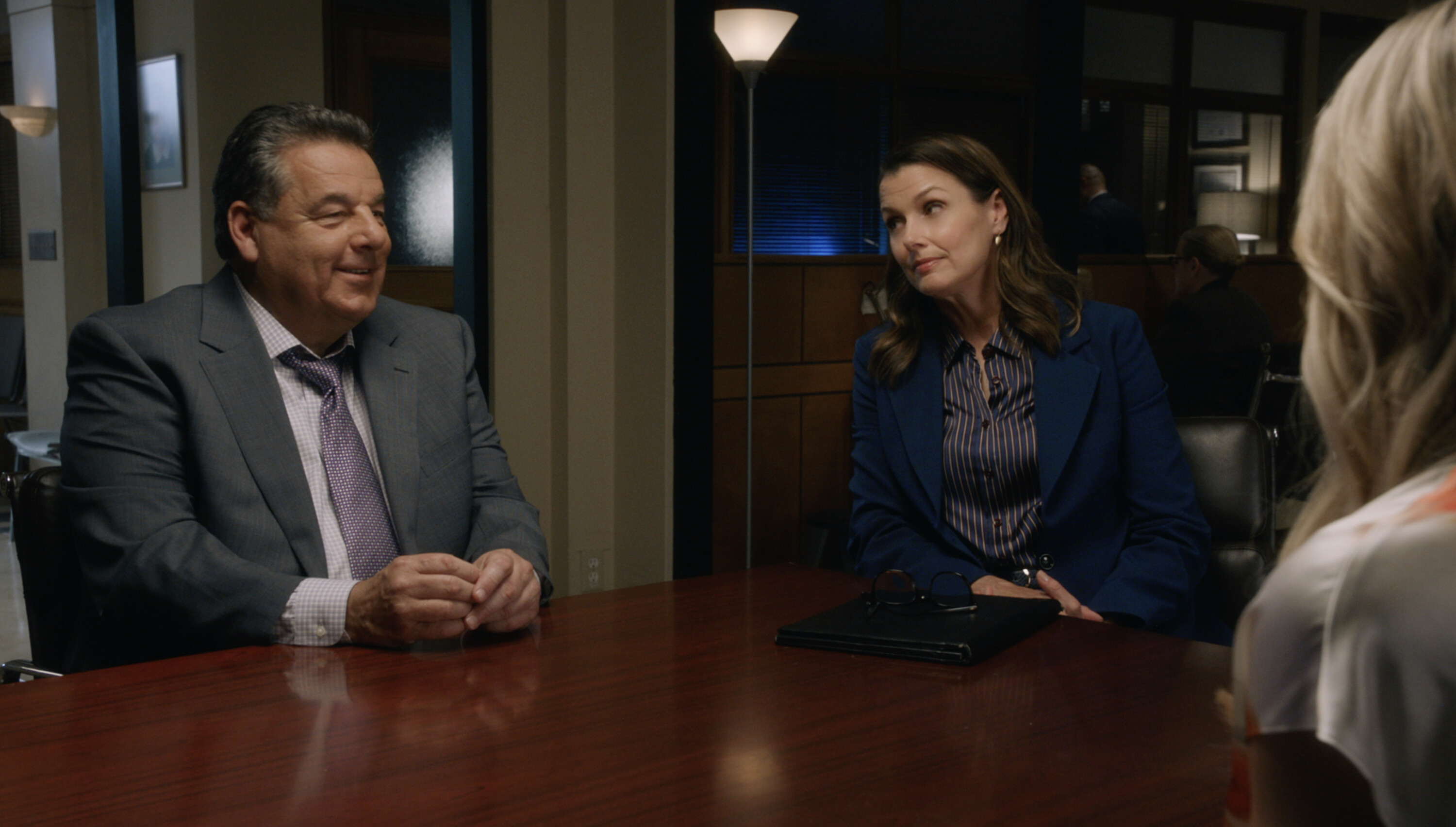 "Entitlement" Danny and Baez investigate when a star student is found dead in her dorm. Eddie and Badillo try to help a man whose apartment has been taken over by a squatter - who also happens to be Jamie’s confidential informant. Frank suspects the Governor has an agenda when he comes to him with a proposal. Erin oversteps when she tries to play matchmaker for Anthony. Pictured (L-R): Steve Schirripa as Anthony Abetemarco, Bridget Moynahan as Erin Reagan Boyle, and Amanda Kloots as Deanne Janson Photo: CBS ©2023 CBS Broadcasting, Inc. All Rights Reserved. Highest quality screengrab available.