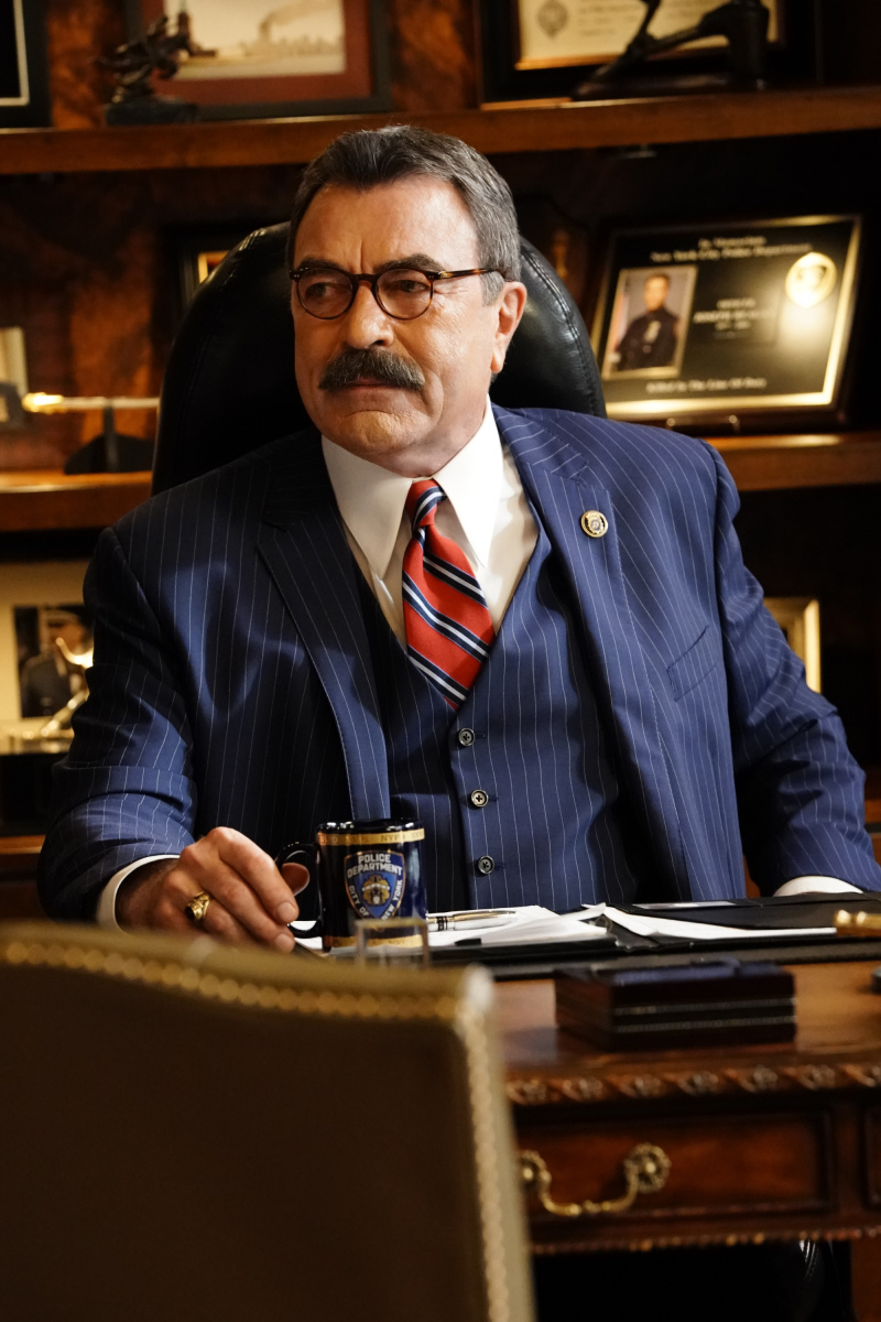 ÒMeet the New BossÓ Ð Gormley looks to Danny and Baez for help tracking down a former NYPD detective he believes may be a threat to FrankÕs safety. Also, Erin navigates office politics when she chooses to reopen a closed case; Jamie is transferred to a new precinct with a lot of problems; and Frank and Baker team up to investigate a complaint about an SVU detective, on BLUE BLOODS, Friday, Oct. 5 (10:00-11:00 PM, ET/PT) on the CBS Television Network. Bebe Neuwirth returns as Kelly Peterson, the corporation counsel who handles civil claims against the department. Pictured: Tom Selleck Photo: John Paul Filo/CBS ©2018CBS Broadcasting Inc. All Rights Reserved.