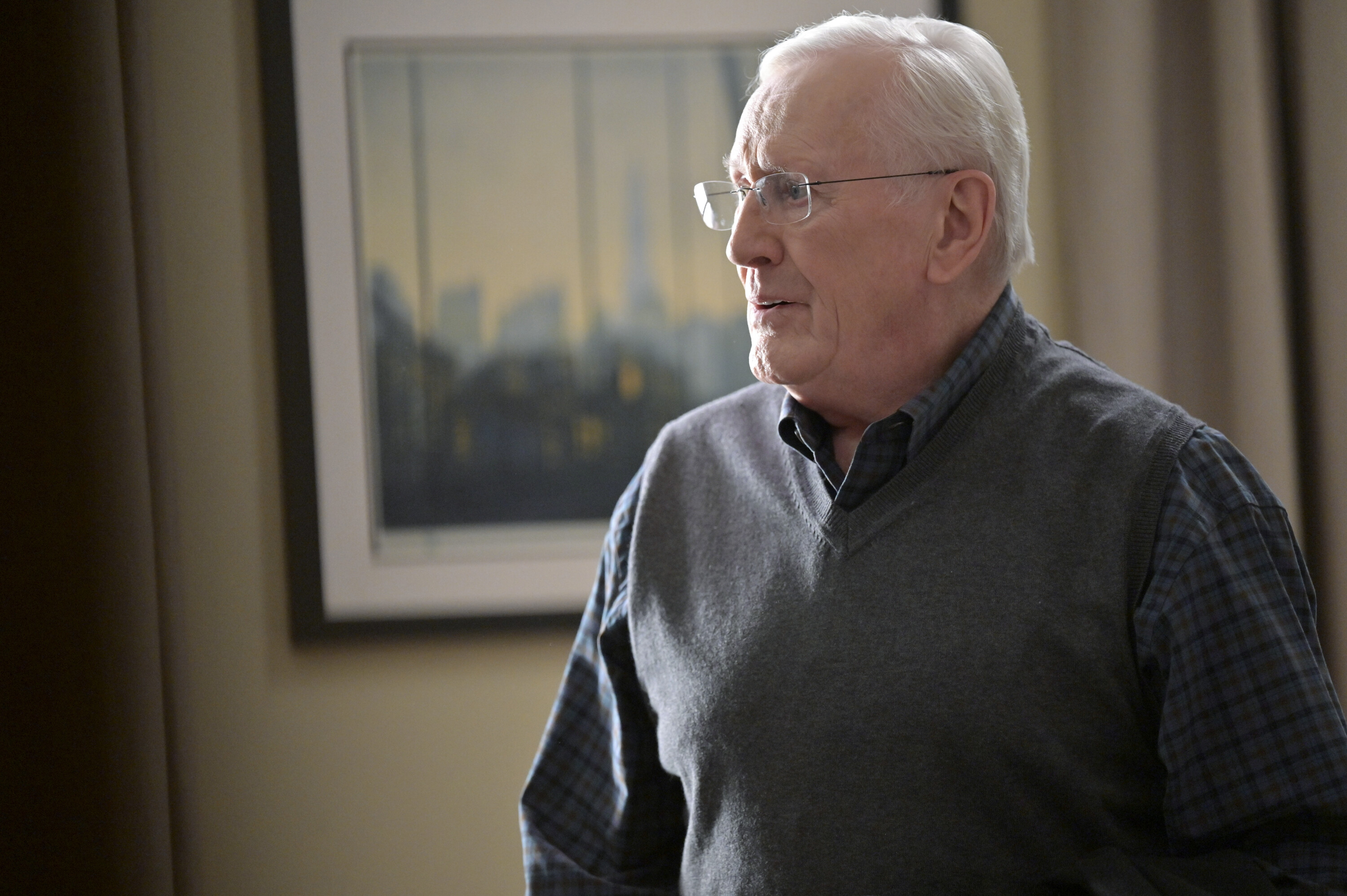 “Nothing Sacred” – Reagan family tensions run high when Frank and his grandson, Joe Hill (Will Hochman), contend with a grievous insult to the memory of Joe’s father, Joe Reagan. Also, Erin and Henry work together to bust an over-the-phone scammer targeting the elderly; Danny intervenes in an undercover assignment led by his spiraling former partner; and Eddie’s captain takes suspicious interest in her efforts to locate a stolen puppy, on BLUE BLOODS, Friday, Jan. 6 (10:00-11:00 PM, ET/PT) on the CBS Television Network. Will Hochman returns as Joe Hill and Bonnie Somerville guest stars as Joe’s mother, Paula Hill. Episode directed by Bridget Moynahan. Pictured: Len Cariou as Henry Reagan. Photo: John Paul Filo/CBS ©2022 CBS Broadcasting, Inc. All Rights Reserved.