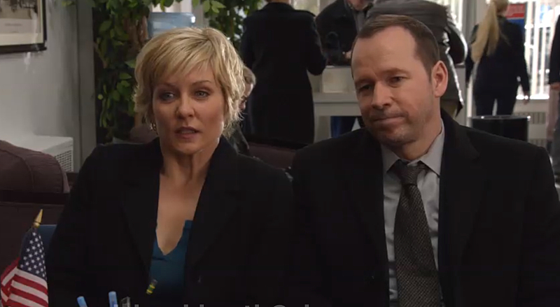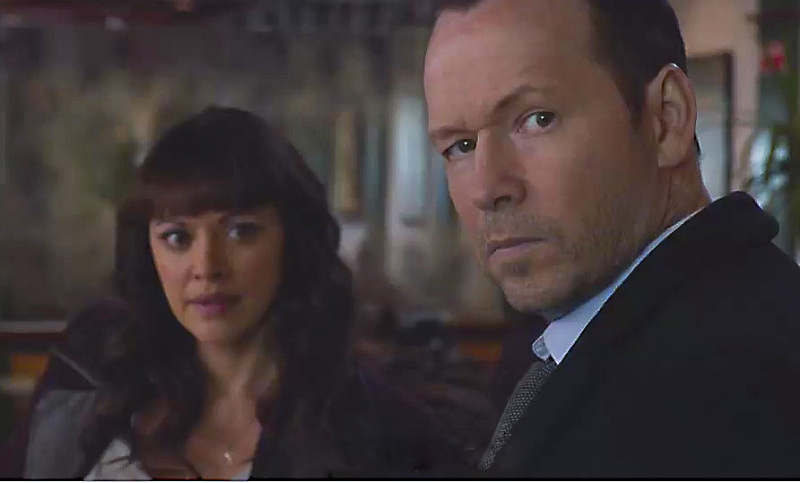 "Baggage" -- Danny is conflicted when he learns that a group of highly trained Army veterans are responsible for a robbery. Meanwhile, after a bomb scare in a subway turns out to be the work of a famous street artist, Garrett and Gormley argue about how to deal with the fallout, on the 100th episode of BLUE BLOODS, on the CBS Television Network. Pictured: Amy Carlson as Linda Reagan, Donnie Wahlberg as Danny Reagan. Photo: CBS ©2014 CBS Broadcasting Inc. All Rights Reserved.
