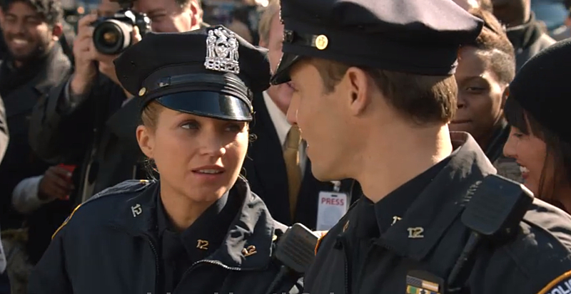 "Baggage" -- Danny is conflicted when he learns that a group of highly trained Army veterans are responsible for a robbery. Meanwhile, after a bomb scare in a subway turns out to be the work of a famous street artist, Garrett and Gormley argue about how to deal with the fallout, on the 100th episode of BLUE BLOODS, on the CBS Television Network. Pictured: Vanessa Ray as Eddie Janko, Will Estes as Jamie Reagan. Photo: CBS ©2014 CBS Broadcasting Inc. All Rights Reserved.