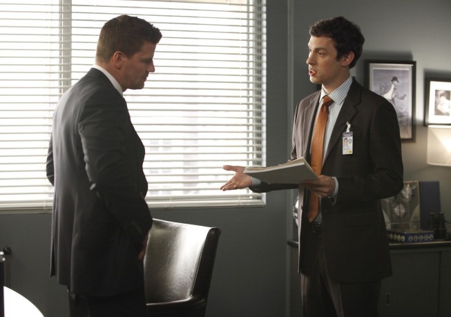BONES: Booth (David Boreanaz, L) and Sweets (John Francis Daley, R) discuss their case in "The Memories in the Shallow Grave" Season Seven premiere of BONES airing Thursday, Nov. 3 (9:00-10:00 ET/PT) on FOX. ©2011 Fox Broadcasting Co. Cr: Beth Dubber/FOX