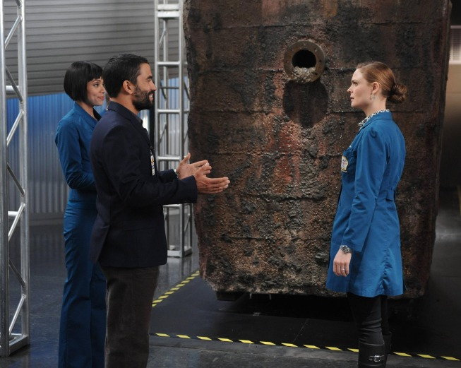 A repo man’s remains are found in a septic tank, and the Jeffersonian team must work together to figure out who the killer is. When the team discovers that the victim had a troubled past, some key witnesses from his earlier days become potential suspects. Meanwhile, handsome and charming Rodolfo Fuentes (guest star Ignacio Serricchio) has defected from Cuba, where he was a forensic anthropologist, but now needs an internship to complete his degree. Brennan agrees to try him out as an intern on a case, and Brennan and Booth discuss whether or not Christine should have a religious upbringing in the all-new “The Repo Man in the Septic Tank” episode of BONES airing Monday, March 17 (8:00-9:00 PM ET/PT) on FOX. (BON-915) (TV-14 D, L, V)