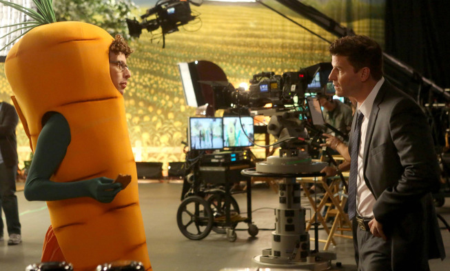 When a children’s TV show actor is found dead, the Jeffersonian team goes behind the scenes to uncover who murdered everyone’s favorite character, “Carrot Bill.” But when the team discovers that the actor was known for his promiscuity, they start to uncover some unlikely suspects. Meanwhile, Booth and Brennan plan Christine’s first birthday party, and Clark (guest star Eugene Byrd) asks the team for their opinions on a fictional novel he’s completed in the all-new “The Carrot in the Kudzu” episode of BONES airing Monday, March 24 (8:00-9:00 PM ET/PT) on FOX. (BON-916) (TV-14 D, L, V)