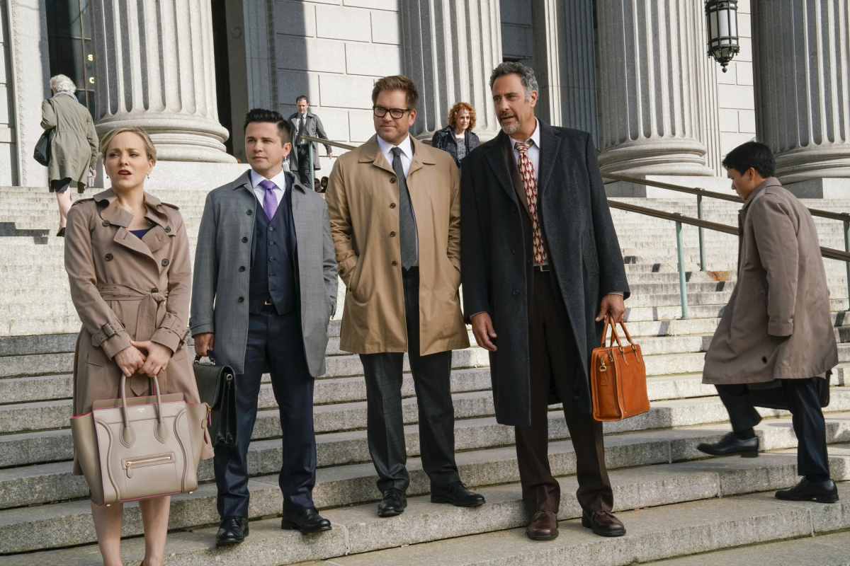 "The Illusion of Control"-- Bull hires an eccentric lawyer to represent him when a celebrity sues him after his advice regarding her custody case backfires, on BULL, Tuesday, Oct 17 (9:00-10:00 PM, ET/PT) on the CBS Television Network. Pictured L-R: Geneva Carr as Marissa Morgan, Freddy Rodriguez as Benny Colón, Michael Weatherly as Dr. Jason Bull, and Brad Garrett as Ron Getman Photo: John Paul Filo/CBS é2017 CBS Broadcasting, Inc. All Rights Reserved