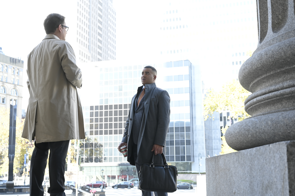 “Prison Break” – Bull assists Chunk as he represents a convict from his time with his law school’s legal aid clinic, a woman accused of killing a guard while trying to escape during a prison transport. While the prosecution alleges the woman shot the guard while trying to escape, Chunk argues that she is being falsely accused by a guard who attempted to sexually assault her during the transport, on BULL, Monday, Nov. 30 (10:00-11:00 PM, ET/PT) on the CBS Television Network. Pictured L-R: Michael Weatherly as Dr. Jason Bull and Christopher Jackson as Chunk Palmer Photo: David M. Russell/CBS ©2020 CBS Broadcasting, Inc. All Rights Reserved