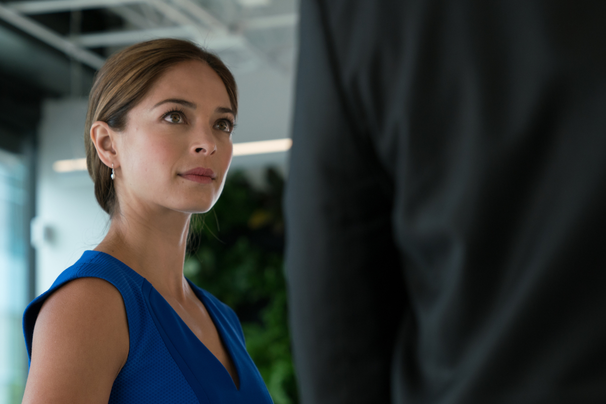 So she’s avoided him. She’s changed her name She’s done everything she can to separate yourself from him. So, the fact that he shows up at our workplace, it’s really hard for her. I mean, I love doing that scene. It was a great scene. But it was like he’s trying to bait her into their old interactions, into their old way of bantering and talking, and she’s refusing to do it, because he refuses to acknowledge what he has done.