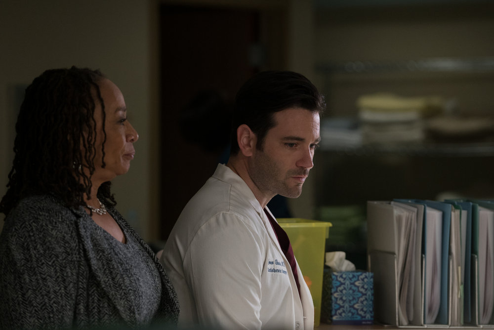 CHICAGO MED -- "Win Loss" Episode 203 -- Pictured: (l-r) S. Epatha Merkerson as Sharon Goodwin, Colin Donnell as Connor Rhodes -- (Photo by: Elizabeth Sisson/NBC)