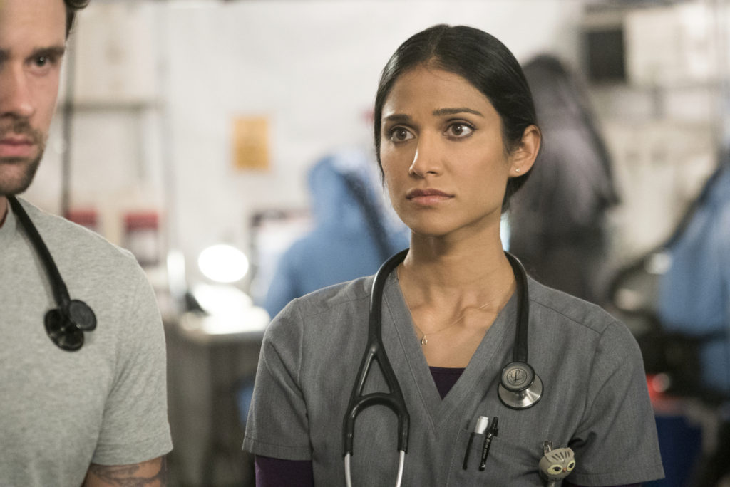 Code Black stars Marcia Gay Harden (Dr. Leanne Rorish), Boris Kodjoe (Dr. Will Campbell), Melanie Chandra (Dr. Malaya Pineda), Harry Ford (Dr. Angus Leighton), Benjamin Hollingsworth (Dr. Mario Savetti), Jillian Murray (Dr. Heather Pinkney), William Allen Young (Dr. Rollie Guthrie), with Luis Guzman (Jesse Sallander) and Rob Lowe (Col. Ethan Willis).