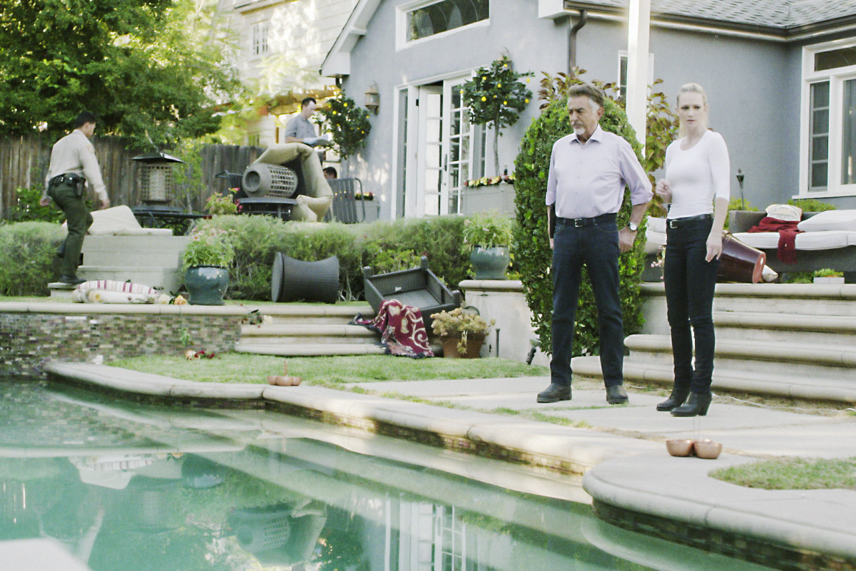 "Submerged" -- When a series of backyard pool homicides are reported in California, the BAU team team searches for an UnSub with a puzzling past, on CRIMINAL MINDS, Wednesday, Jan. 3 (10:00-11:00 PM, ET/PT) on the CBS Television Network. Lou Diamond Phillips guest stars as Sheriff Clifford. Pictured: Joe Mantegna (David Rossi), A.J. Cook (Jennifer "JJ" Jareau) Photo: Best Screen Grab Available é2017 CBS Broadcasting, Inc. All Rights Reserved