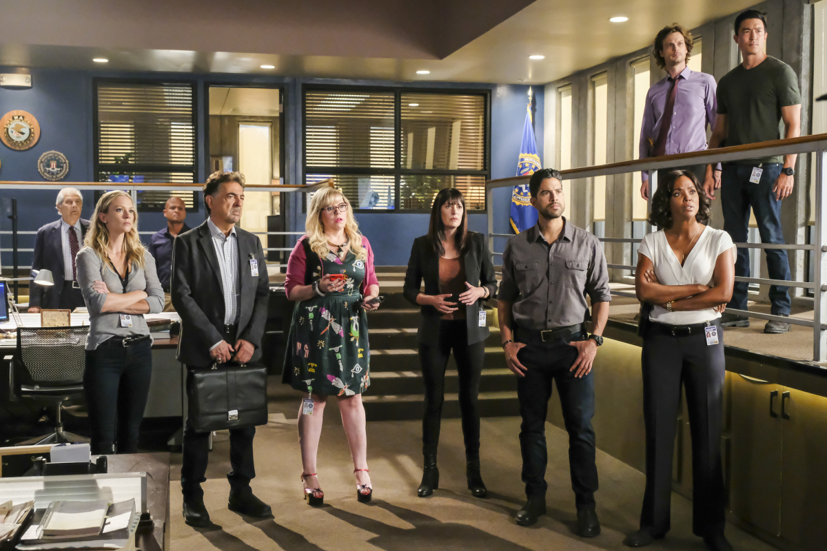 "Killer App" -- The BAU investigates a workplace shooting committed by a state-of-the-art drone in Silicon Valley, on CRIMINAL MINDS, Wednesday, Oct. 11 (10:00-11:00 PM, ET/PT) on the CBS Television Network. Pictured: A.J. Cook (Jennifer Jareau), Joe Mantegna (David Rossi), Kirsten Vangsness (Penelope Garcia), Paget Brewster (Emily Prentiss), Adam Rodriguez (Luke Alvez), Aisha Tyler (Dr. Tara Lewis), Matthew Gray Gubler (Dr. Reid), Daniel Henney (Matt Simmons) Photo: Darren Michaels/CBS é2017 CBS Broadcasting, Inc. All Rights Reserved