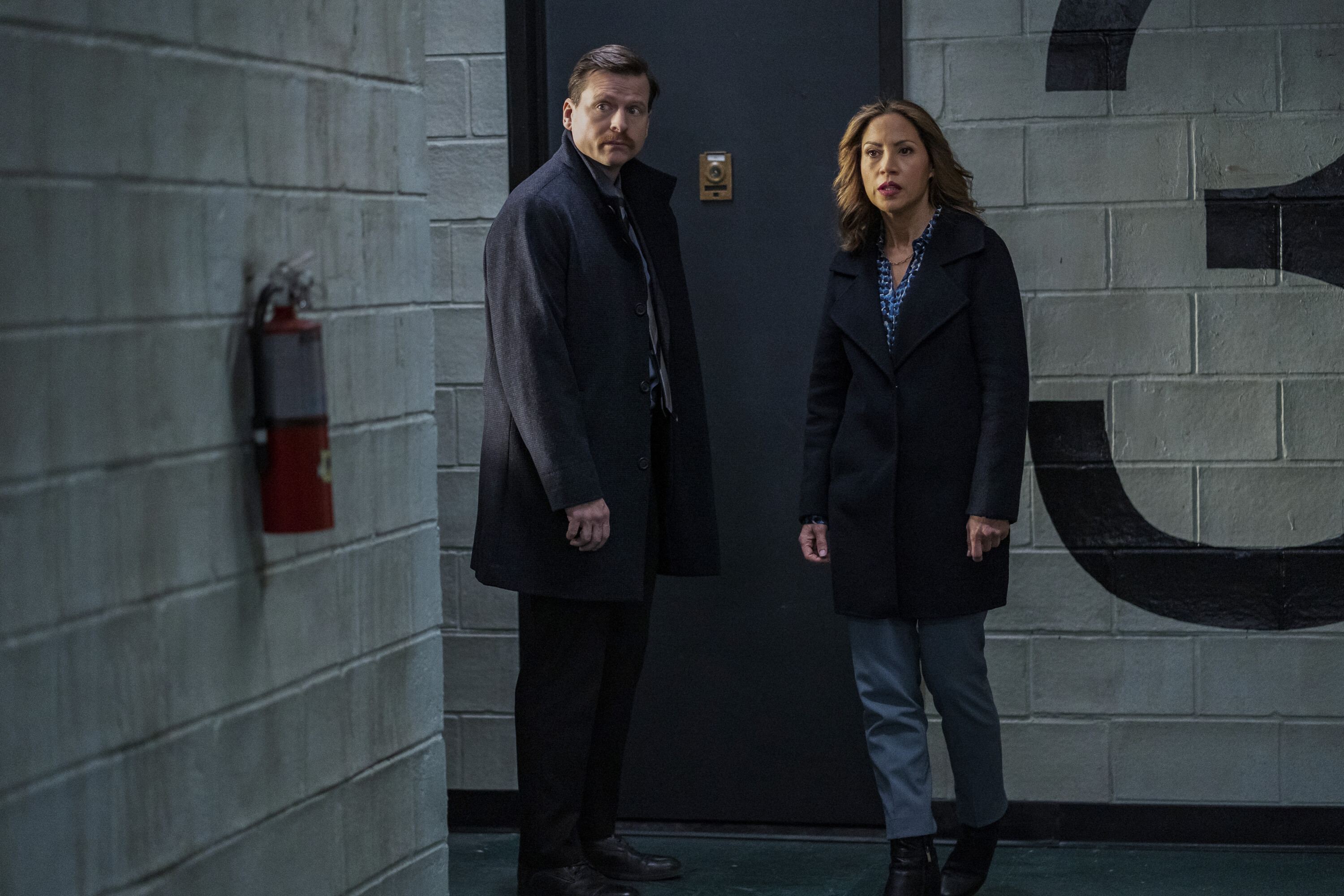 “Family Tithes” – When a house party in Ruskin Gardens ends in murder, Morales and Killian turn to Quinlan for insight into her neighbors to help crack the case. Also, Haywood takes on an unexpected new role, and Suarez tries to help his brother with a challenging situation, on EAST NEW YORK, Sunday, March 5 (9:00-10:00 PM, ET/PT) on the CBS Television Network and available to stream live and on demand on Paramount+. Pictured (L-R):Kevin Rankin as Det. Tommy Killian and Elizabeth Rodriguez as Det. Crystal Morales. Photo: Scott McDermott/CBS ©2023 CBS Broadcasting, Inc. All Rights Reserved.