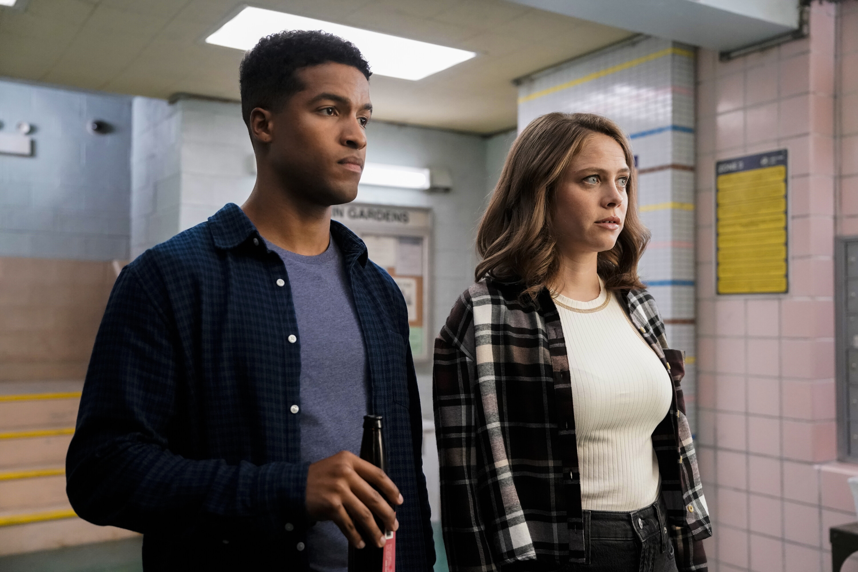 “Going Commando” – When a prisoner serving a life sentence escapes, the 7-4 teams up with the U.S. Marshals to track down the convict before he finds the cop who put him away: Deputy Inspector Regina Haywood. Also, Officer Quinlan struggles with her living situation, on EAST NEW YORK, Sunday, Oct. 30 (8:00-9:00 PM, ET/PT) on the CBS Television Network and available to stream live and on demand on Paramount+.* Pictured (L-R): Lavel Schley as Officer Andre Bentley and Olivia Luccardi as Officer Brandy Quinlan. Photo Credit: Scott McDermott / 2022 Warner Bros. Entertainment Inc.