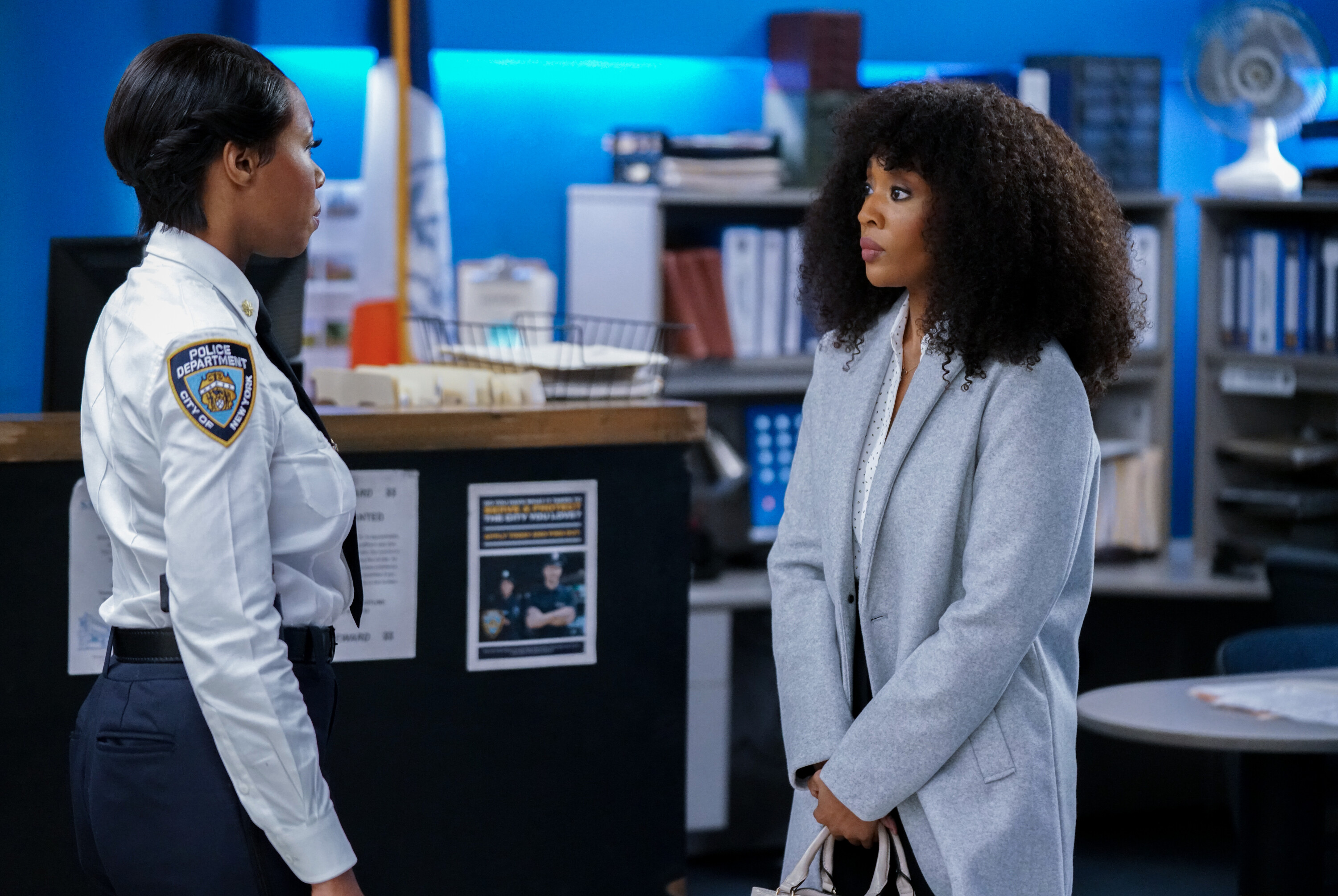 “In the Bag” – The 7-4’s investigation into a violent home invasion leads them to question one of their own. Also, Morales contends with a situation at her son’s school, and Haywood is forced to confront her father’s past, on EAST NEW YORK, Sunday, April 16 (9:00-10:00 PM, ET/PT) on the CBS Television Network, and available to stream live and on demand on Paramount+*. Pictured (L-R): Amanda Warren as Regina Haywood and Racquel Palmer as Angela Bridwell. Photo: Spencer Pazer /CBS ©2023 CBS Broadcasting, Inc. All Rights Reserved.