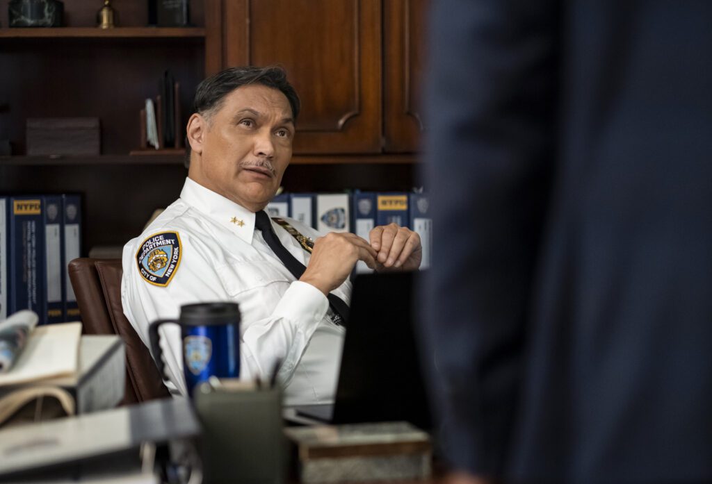“We Didn’t Start the Fire” – When the 7-4 investigates a fatal fire at a hair salon, Killian and Morales turn to Dr. Ken Corley (Brian Stokes Mitchell), a medical examiner with ties to Regina’s past, and fire marshal Nicky Greenville (Lea DeLaria) for crucial insight. Also, Haywood announces a new policy without discussing it with Suarez, and Quinlan worries about Bentley’s worsening nightmares, on EAST NEW YORK, Sunday, Feb. 26 (9:00-10:00 PM, ET/PT) on the CBS Television Network and available to stream live and on demand on Paramount+. Pictured: Jimmy Smits as Chief John Suarez Photo Credit: Scott McDermott / 2022 Warner Bros. Entertainment Inc. All Rights Reserved.