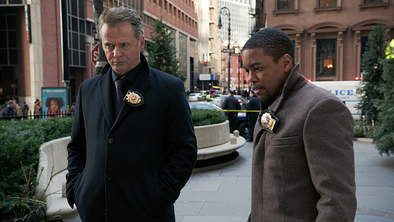 "When Your Number's Up" -- Holmes and Watson follow a blood trail into the world of wrongful death compensation when they investigate a series of murders in which the killer leaves envelopes of cash on the victims. Also, Holmes makes a generous gesture towards Watson as she suffers through the aftermath of a personal crisis, on ELEMENTARY, Thursday, Feb. 19 (10:00-11:00 PM, ET/PT), on the CBS Television Network. Pictured (L-R) Aidan Quinn as Captain Tommy Gregson and Jon Michael Hill Detective Marcus Bell Photo: Best Possible Screen Grabs/CBS é2015 CBS Broadcasting Inc. All Rights Reserved.