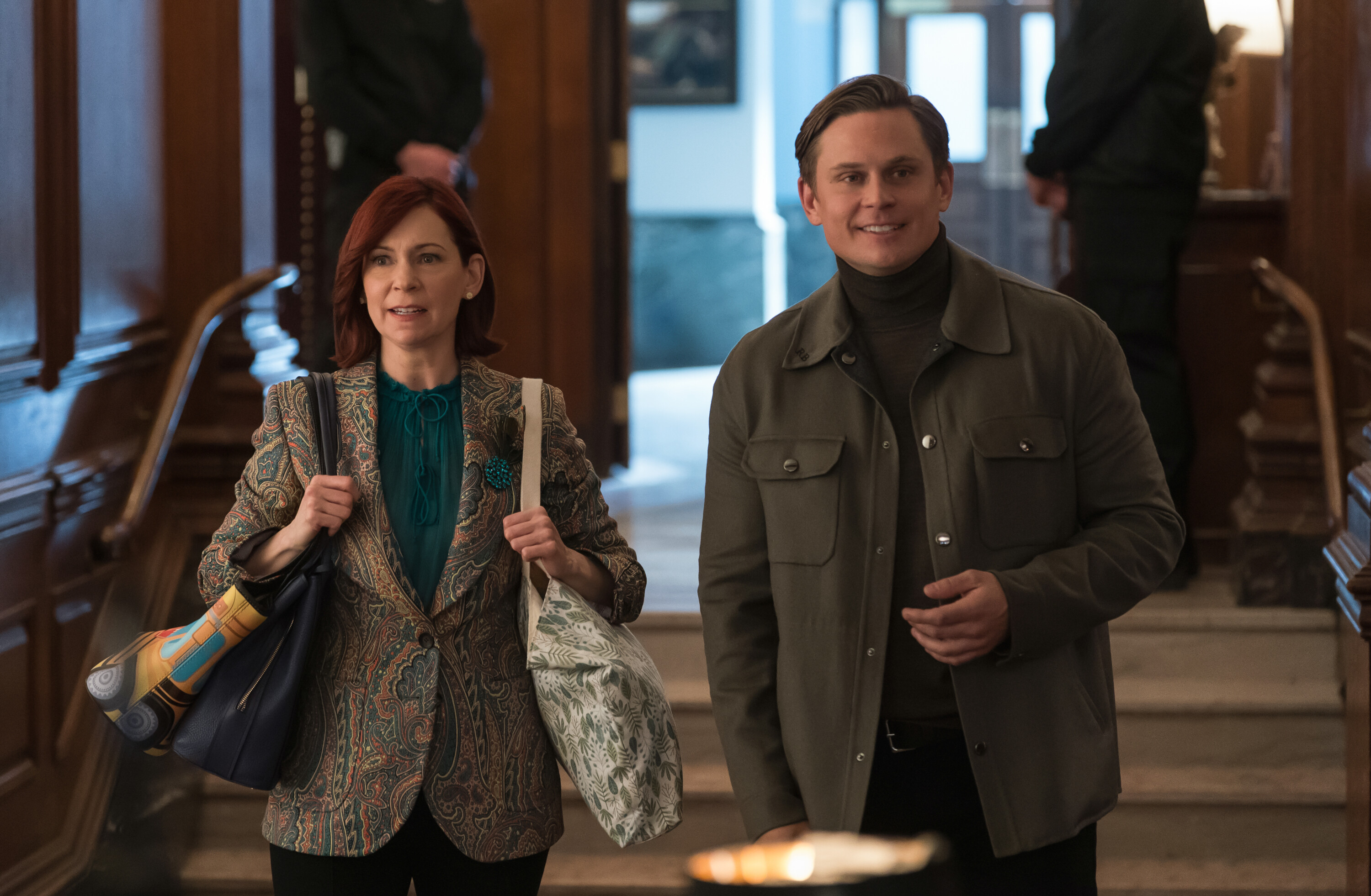 “I’ve Got a Little List – While investigating what appears to be a random shooting, Elsbeth meets Rod (Billy Magnussen), an entitled playboy working through his bucket list of thrills, which may include murder. In the end, Elsbeth’s efforts to catch the killer land her in serious legal trouble, on the CBS Original series ELSBETH, Thursday, May 1 (9:01-10:00 PM, ET/PT) on the CBS Television Network, and streaming on Paramount+ (live and on demand for Paramount+ with SHOWTIME subscribers, or on demand for Paramount+ Essential subscribers the day after the episode airs)*. Pictured (L-R): Carrie Preston as Elsbeth Tascioni and Billy Magnussen as Rod Bedford Photo: Michael Parmelee/CBS ©2025 CBS Broadcasting, Inc. All Rights Reserved.