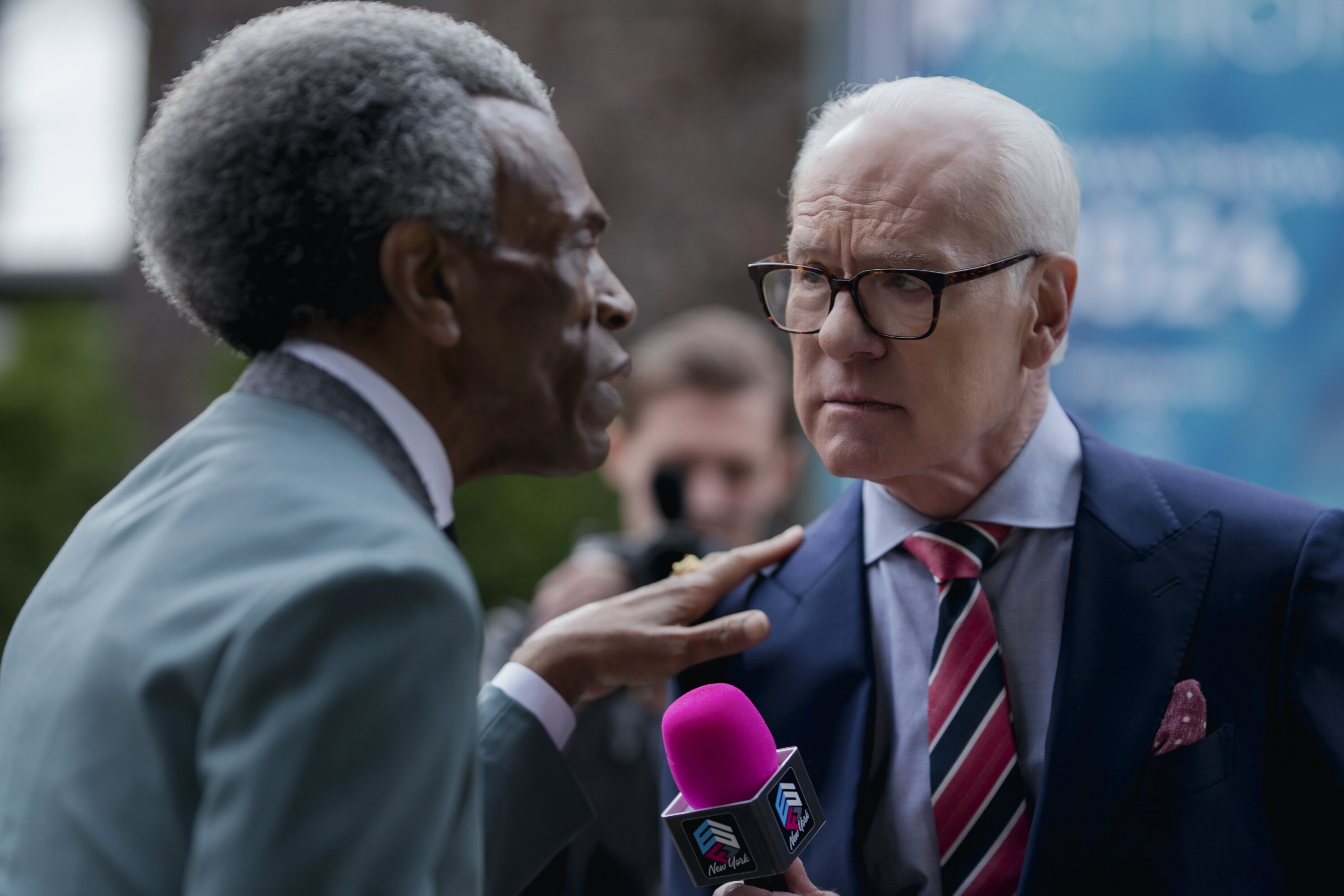 “A Fitting Finale” – When an unlikable fashion photographer is murdered in the middle of a fashion show, Elsbeth and the team suspect the killer to be either the photographer’s college ex – and leading model of the show, Nadine (Laura Benanti) – or her jealous husband. Meanwhile, Elsbeth’s role at the precinct is thrown into question, on the first season finale of the CBS Original series ELSBETH, Thursday, May 23 (9:00-10:00 PM, ET/PT) on the CBS Television Network, and streaming on Paramount+ (live and on-demand for Paramount+ with SHOWTIME subscribers, or on-demand for Paramount+ Essential subscribers the day after the episode airs)*. André De Shields also guest stars as fashion designer Matteo Hart and Tim Gunn cameos as himself. Pictured (L-R): André De Shields as Matteo Hart and Tim Gunn as Tim Gunn Photo: Michael Parmelee/CBS ©2024 CBS Broadcasting, Inc. All Rights Reserved.