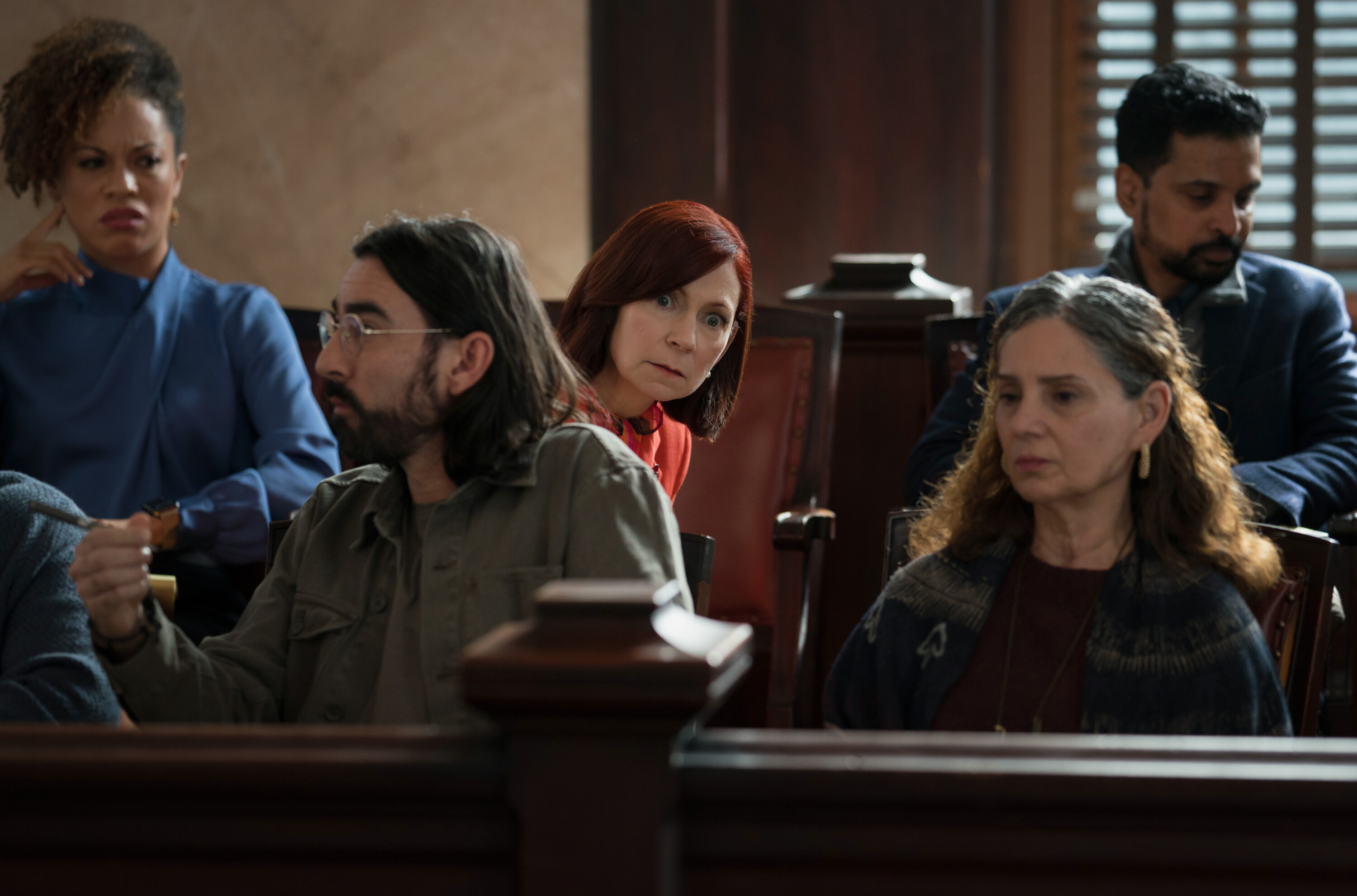 Carrie Preston’s real-life husband Michael Emerson makes his debut on the series as Judge Milton Crawford, Elsbeth’s formidable adversary who is presiding over a murder trial. The December 12 episode of Elsbeth is called “One Angry Woman” and you can find photos and a description below.