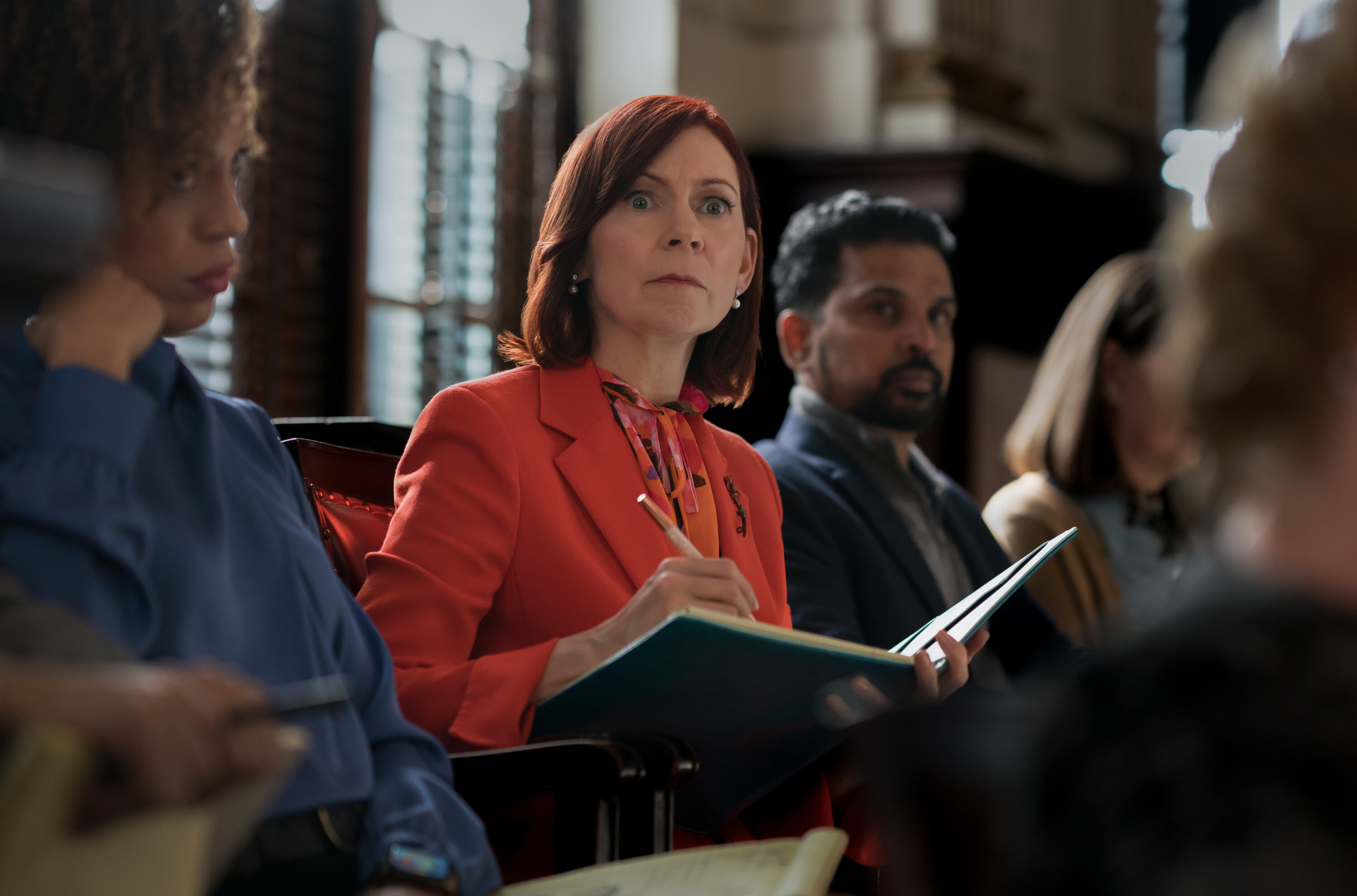 “One Angry Woman” - Elsbeth finally makes it as a true New Yorker when she is summoned to jury duty and lands on a murder trial where she faces off with the unusually difficult Judge Milton Crawford (Michael Emerson) who will prove a formidable adversary, on the CBS original series ELSBETH, Thursday, Dec. 12 (10:00-11:00 PM, ET/PT) on the CBS Television Network, and streaming on Paramount+ (live and on demand for Paramount+ with SHOWTIME subscribers, or on demand for Paramount+ Essential subscribers the day after the episode airs)* Pictured: Carrie Preston as Elsbeth Tascioni Photo: Michael Parmelee/CBS ©2024 CBS Broadcasting, Inc. All Rights Reserved.