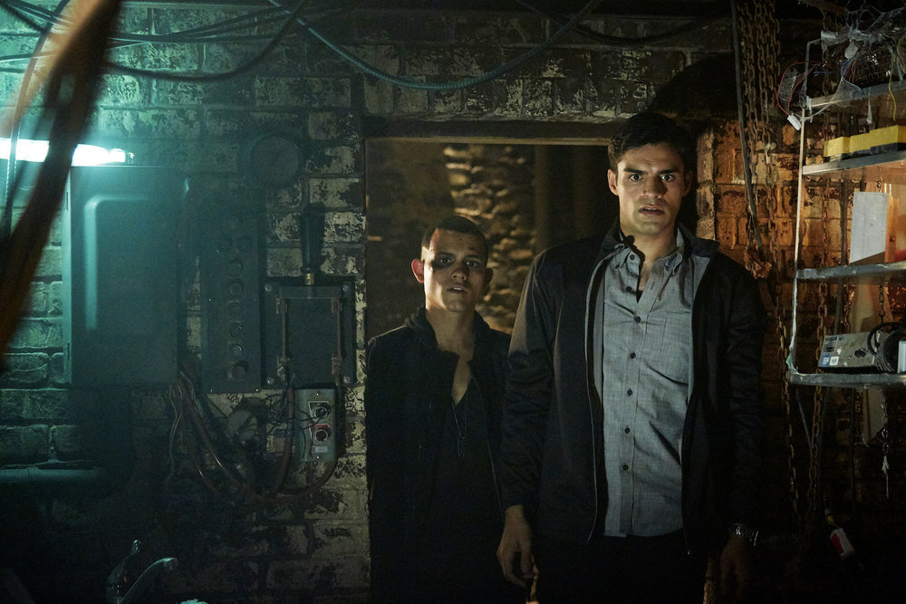 INCORPORATED -- "Burning Platform" Episode 109 -- Pictured: (l-r) Eddie Ramos as Theo, Sean Teale as Ben Larson -- (Photo by: Ken Woroner/Syfy)