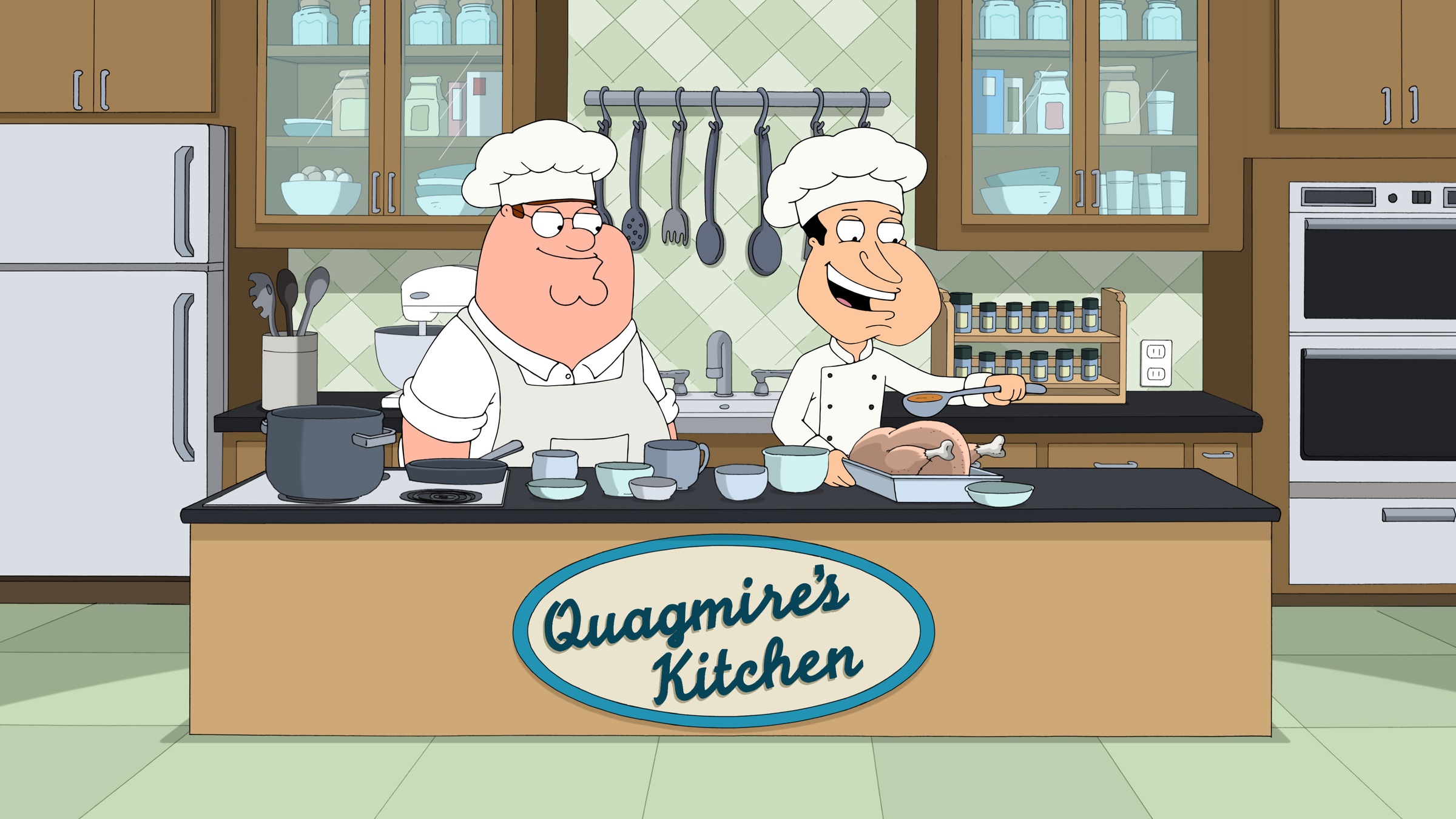 The Season 13 premiere of Family Guy airs tonight at 9PM (ET/PT) on FOX, and in it, Stewie is diagnosed with ADD and prescribed Adderall, which Brian takes to write a 2000-page proposal to pitch to author George R.R. Martin at a book convention. Meanwhile, Quagmire and Peter compete, Iron Chef-style, to determine which of them gets to keep his new cooking.