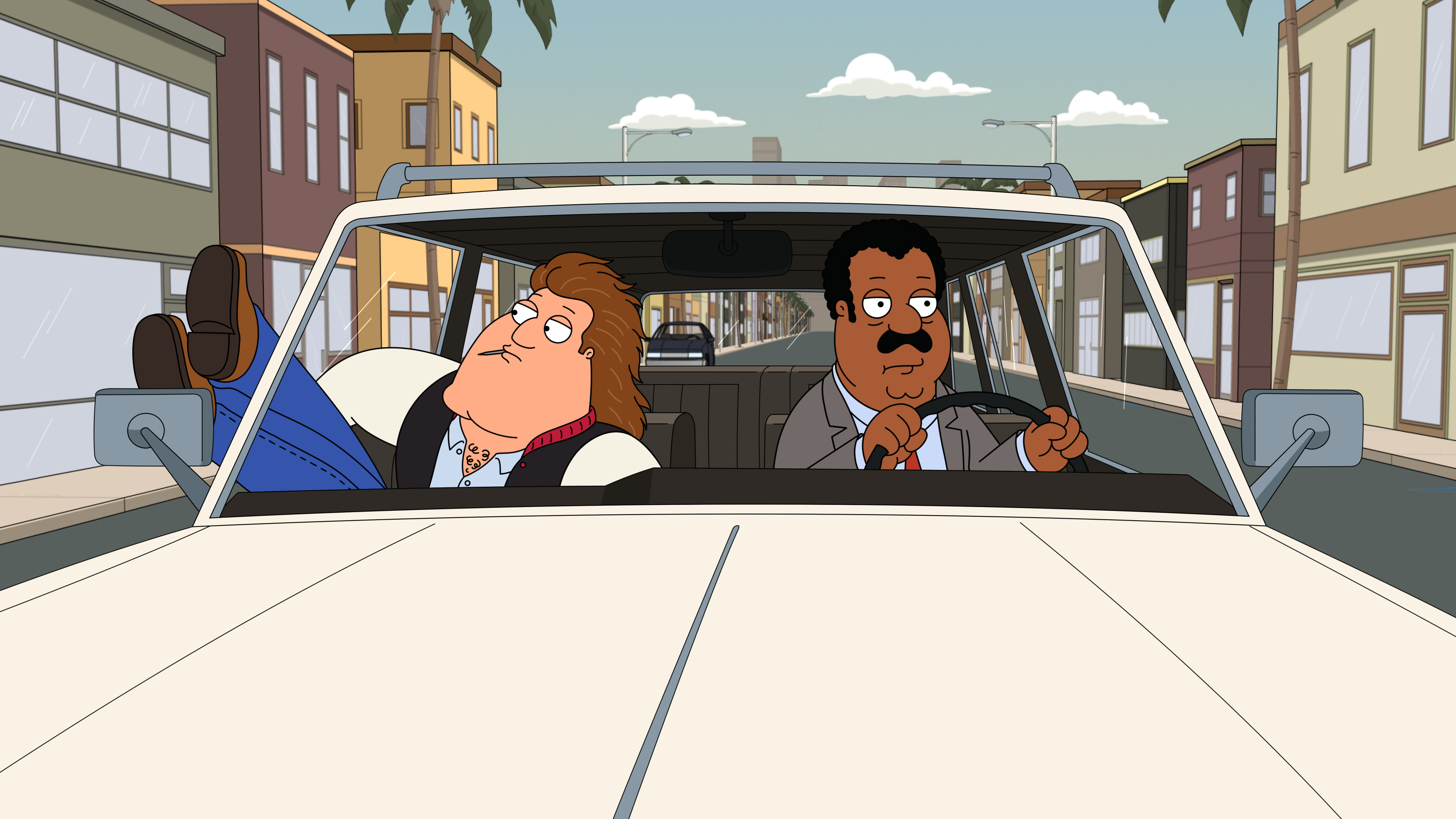 Peter and his friends wonder aloud about what their dream jobs would be. Peter enters a sequence a la James Bond, where he goes by the name Band and has to fight his nemesis, Blofella (aka Stewie). Quagmire reflects on his job as an aerobics instructor in the ’80s, which was his dream before he got run out of business by Jane Fonda. Cleveland and Joe take part in a Lethal Weapon sequence, where together they complete a drug bust in the all-new “Take This Job and Love It” episode of Family Guy airing Wednesday, March 20 (9:32-10:00 PM ET/PT) on FOX. (FG-2108) (TV-14 D, L, S, V)