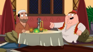 When Peter, Quagmire and Joe need a jolt in their mundane lives, they decide to go skydiving. But after an unfortunate accident, Peter ends up in the hospital, where he befriends Mahmoud (guest voice Omid Abtahi), who convinces Peter to convert to Islam. Quagmire and Joe are suspicious of Mahmoud’s intentions and try to stop the friendship from progressing in the all-new “Turban Cowboy” episode of FAMILY GUY airing Sunday, March 17 (9:00-9:30 PM ET/PT) on FOX. (FG-1013) (TV-14 D, L, S, V)