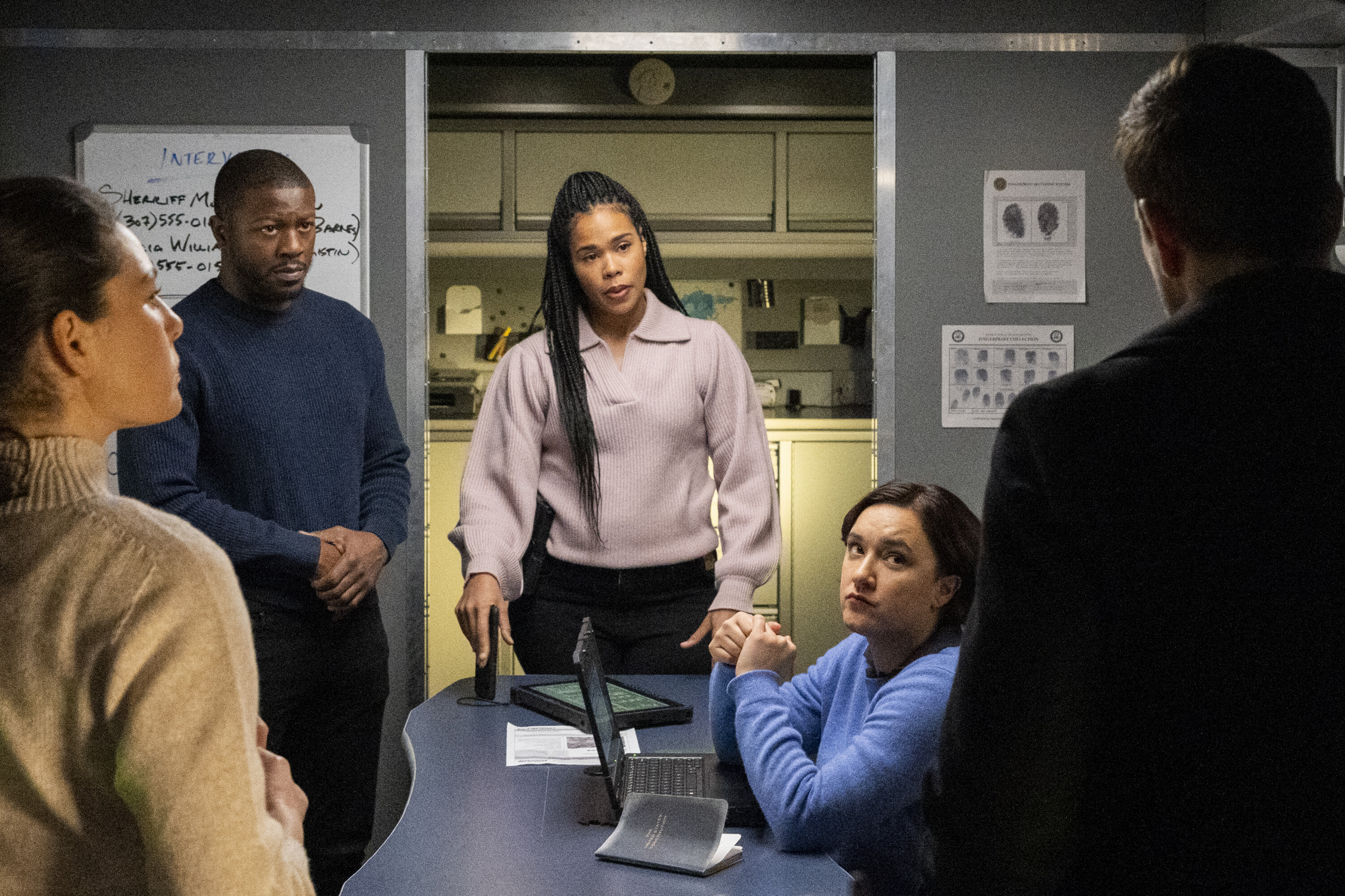“Rangeland” – After two agents from the Bureau of Land Management go missing while executing a land seizure warrant in Wyoming, the Fugitive Task Force heads west to track them down in an unwelcoming county. Also, Hana receives a threat, on the CBS Original series FBI: MOST WANTED, Tuesday, April 18 (10:00-11:00 PM, ET/PT) on the CBS Television Network, and available to stream live and on demand on Paramount+. Pictured (L-R): Alexa Davalos as Special Agent Kristin Gaines, Edwin Hodge as Special Agent Ray Cannon, Roxy Sternberg as Special Agent Sheryll Barnes, and Keisha Castle-Hughes as Special Agent Hana Gibson. Photo: Mark Schäfer/CBS ©2023 CBS Broadcasting, Inc. All Rights Reserved.