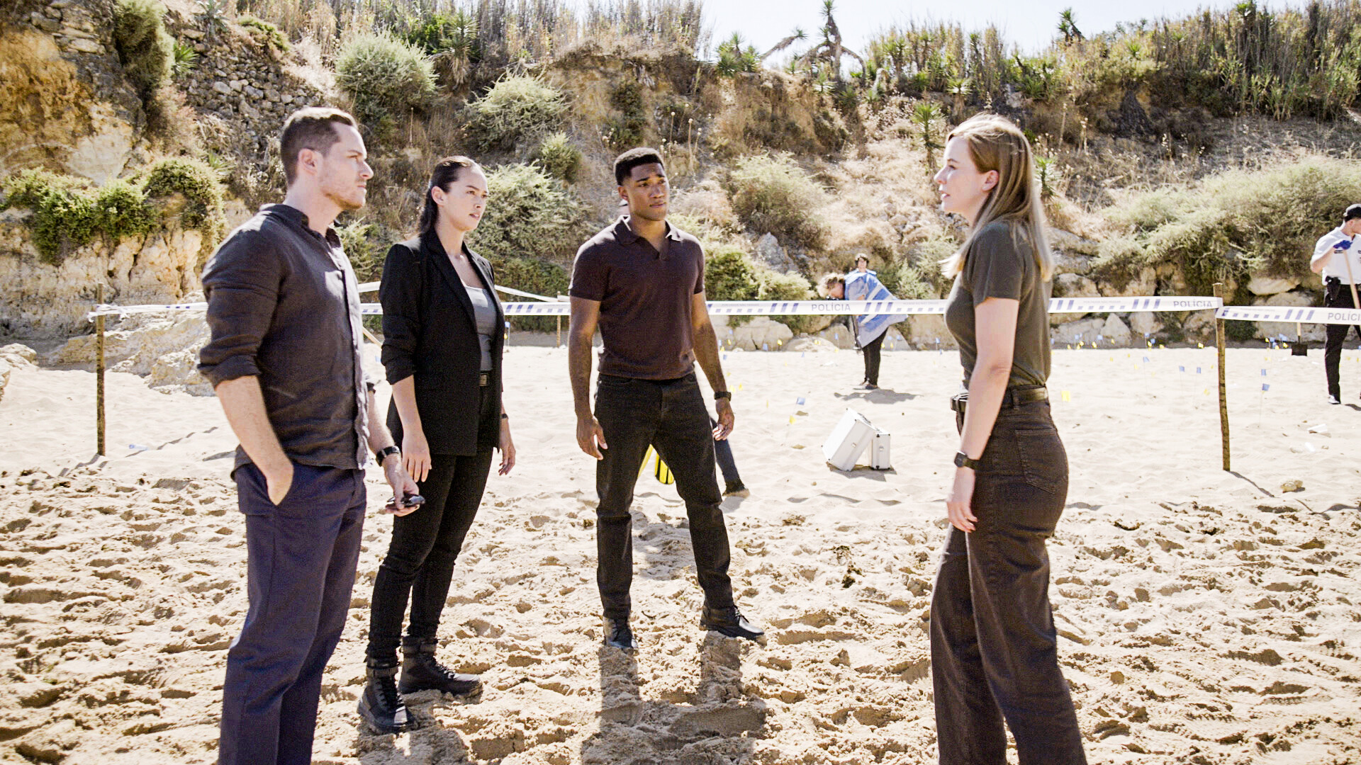 “Nothing Sudden About It” – When an American teenager disappears from a beach party during her senior year trip to Portugal, the Fly Team heads up the search, which is further complicated by the missing teen’s parents’ differing opinions, on FBI: INTERNATIONAL, Tuesday, Oct. 29 (9:00-10:00 PM, ET/PT) on the CBS Television Network, and streaming on Paramount+ (live and on-demand for Paramount+ with SHOWTIME subscribers, or on-demand for Paramount+ Essential subscribers the day after the episode airs). Pictured (L-R): Jesse Lee Soffer as Supervisory Special Agent Wesley "Wes" Mitchell, Vinessa Vidotto as Special Agent Cameron Vo, Carter Redwood as Special Agent Andre Raines, and Eva-Jane Willis as Europol Agent Megan “Smitty” Garretson. Photo: CBS ©2024 CBS Broadcasting, Inc. All Rights Reserved. Highest quality screengrab available.