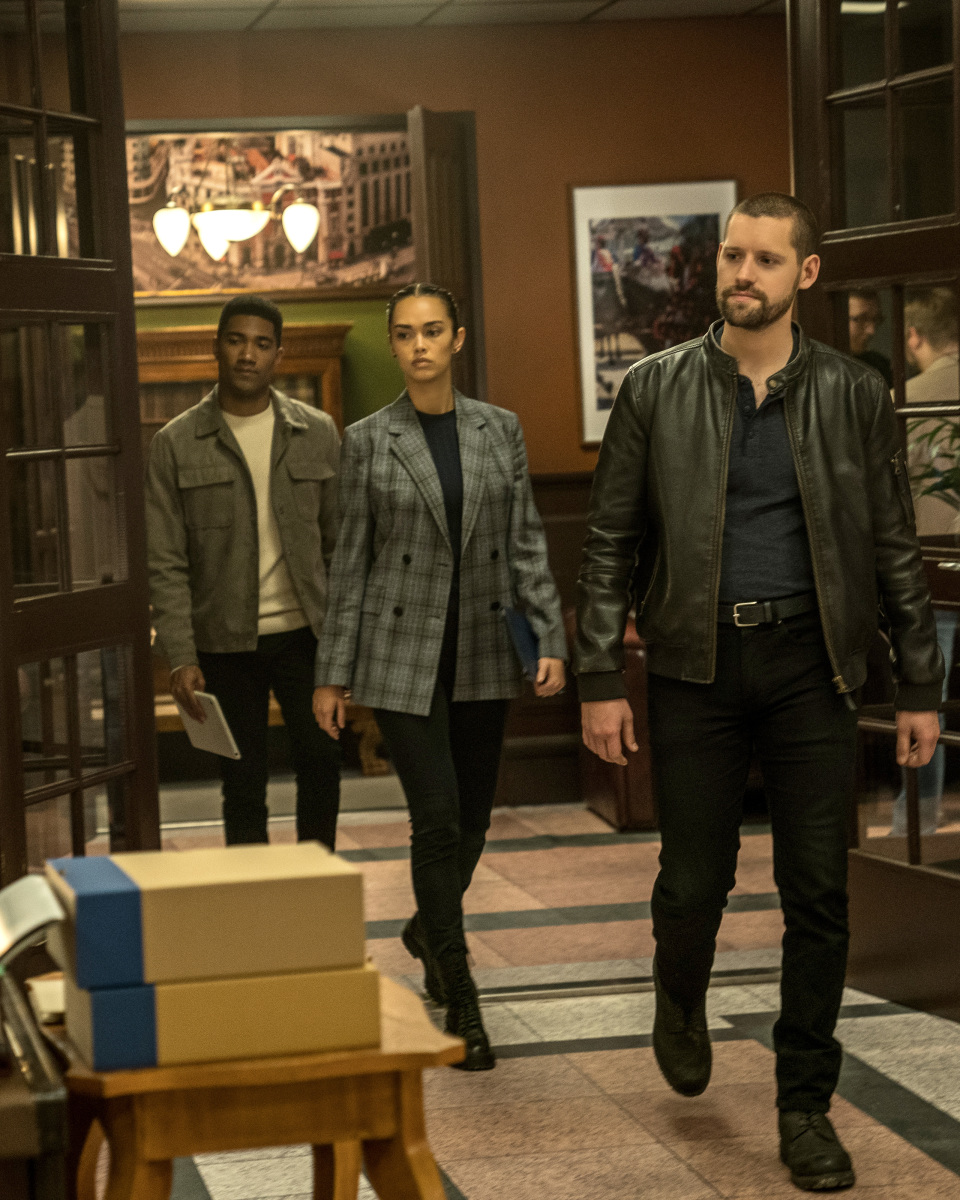 "American Optimism" - The team investigates an American citizen who is proclaiming his innocence after seeking sanctuary at Madrid's U.S. embassy while still covered in the blood of his murdered Spanish boyfriend. Also, Vo and Raines continue to grow their friendship, on the CBS Original series FBI: INTERNATIONAL, Tuesday, Oct. 12 (9:00-10:00 PM, ET/PT) on the CBS Television Network, and available to stream live and on demand on Paramount+. Pictured (L-R) Carter Redwood as Special Agent Andre Raines, Vinessa Vidotto as Special Agent Cameron Vo and Luke Kleintank as Special Agent Scott Forrester Photo: Katalin Vermes CBS©2021 CBS Broadcasting Inc. All Rights Reserved.