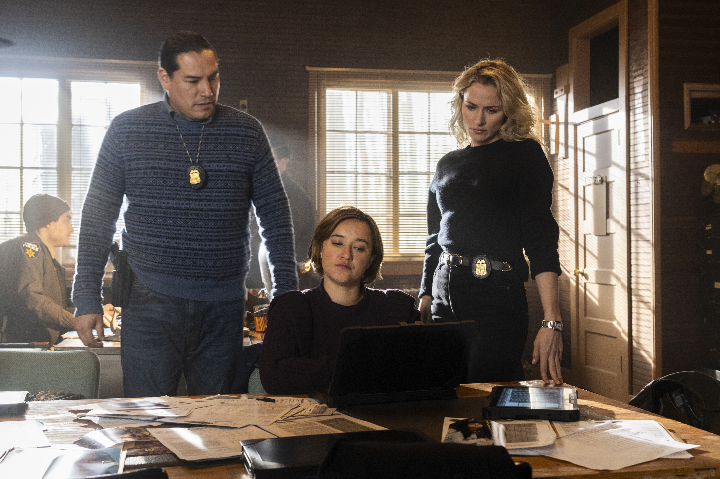 “Hollow” – The Fugitive Task Force heads upstate to assist in a search for missing and murdered Indigenous women and hunt down the serial killer responsible. Meanwhile, Barnes struggles to find time to bond with her wife, on FBI: MOST WANTED, Tuesday, March 12 (10:00-11:00 PM, ET/PT) on the CBS Television Network, and streaming on Paramount+ (live and on demand for Paramount+ with SHOWTIME subscribers, or on demand for Paramount+ Essential subscribers the day after the episode airs). Pictured (L-R): Eddie Spears as SRA Whitehawk, Keisha Castle-Hughes as Special Agent Hana Gibson, and Shantel VanSanten as Special Agent Nina Chase. Photo: Mark Schafer/CBS ©2024 CBS Broadcasting, Inc. All Rights Reserved.