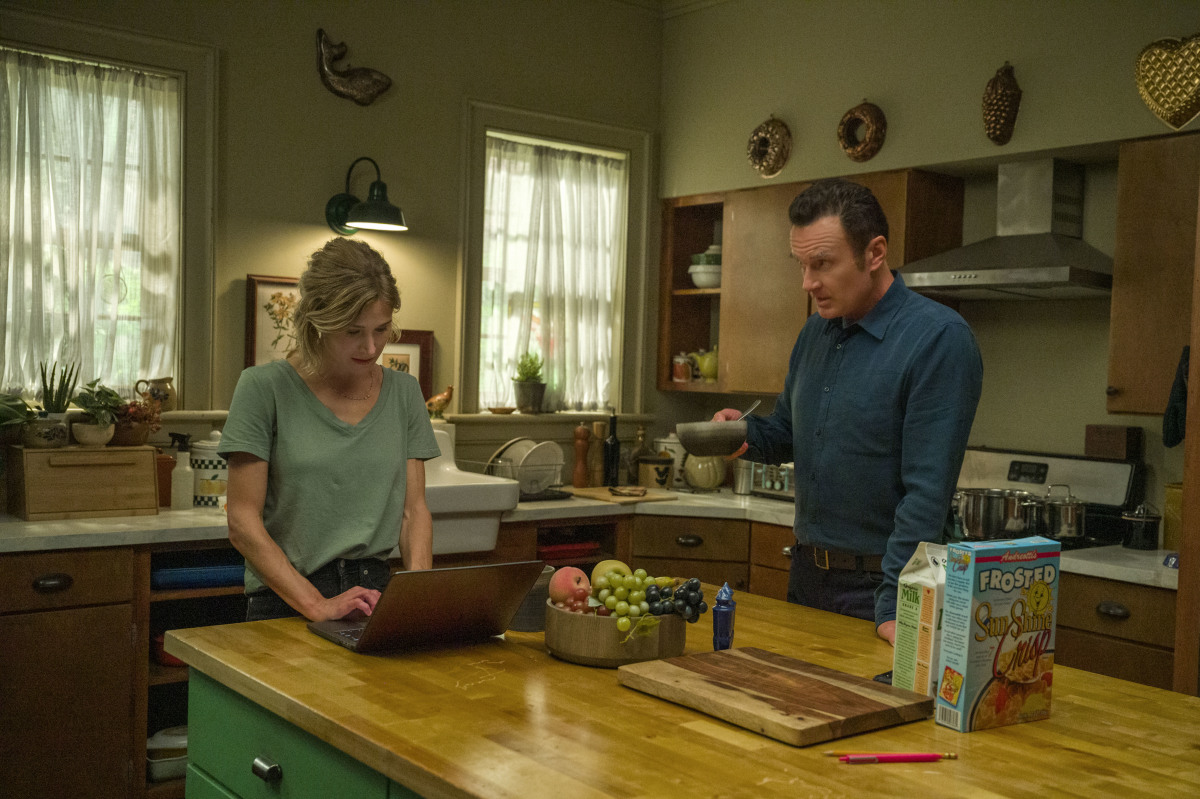 "Patriots" - New Fugitive Task Force member Kristin Gaines joins Jess and the team as they head to D.C. to find a dangerous fugitive from the Jan. 6 Capitol riot, on FBI: MOST WANTED, Tuesday, Sept. 28 (10:00-11:00 PM, ET/PT) on the CBS Television Network and available to stream live and on demand on Paramount+. Pictured (L-R) Jen Landon as Sarah Allen and Julian McMahon as Supervisory Special Agent Jess LaCroix Photo: Mark Schäfer/ ©2021 CBS Broadcasting Inc. All Rights Reserved.