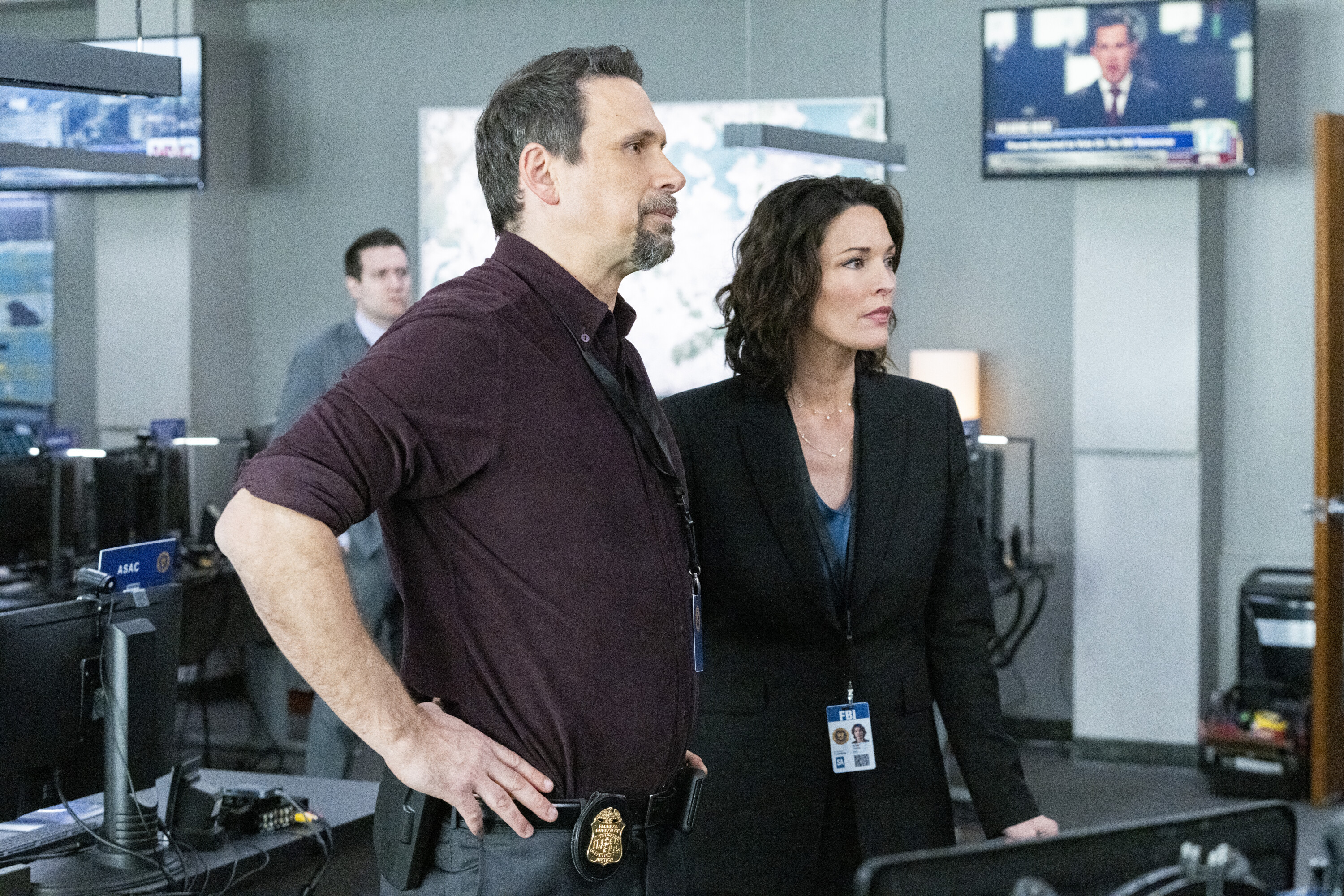 “The Lies We Tell” – When an off-duty diplomatic security agent is fatally shot in New York City trying to apprehend someone, the team investigates if there’s a connection to his time working in Croatia, on the CBS Original series FBI, Tuesday, Feb. 28 (8:00-9:00 PM, ET/PT) on the CBS Television Network, and available to stream live and on demand on Paramount+. Pictured (L-R): Jeremy Sisto as Assistant Special Agent in Charge Jubal Valentine and Alana De La Garza as Special Agent in Charge Isobel Castille. Photo: Bennett Raglin/CBS ©2023 CBS Broadcasting, Inc. All Rights Reserved.
