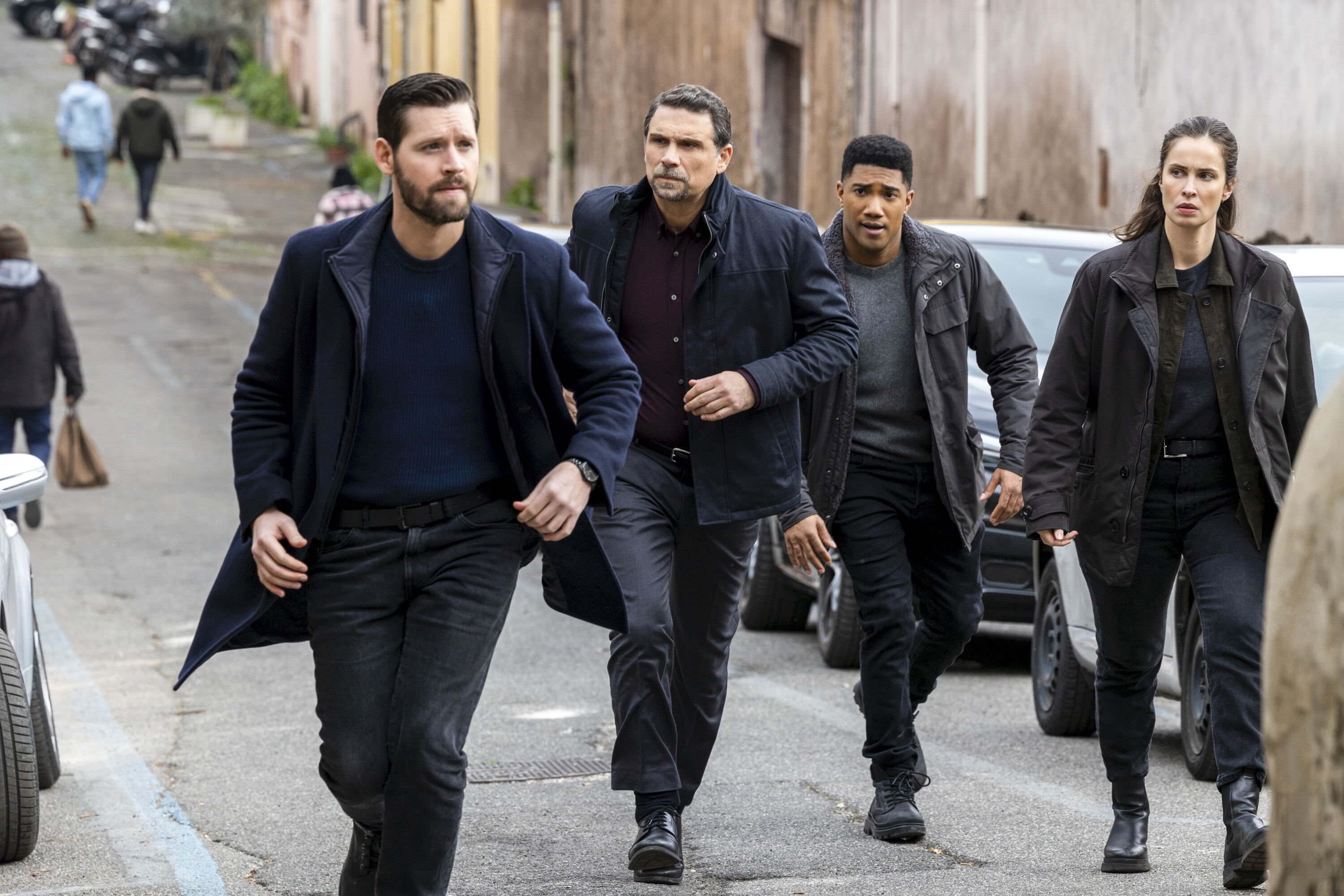 “Imminent Threat - Part One” – When the abduction of an American architect in Rome appears to be connected to a brewing terror threat in New York City, FBI’s Jubal (star Jeremy Sisto) and Nina (recurring star Shantel VanSanten) join Forrester and his Fly Team in Italy as they work together to find the missing American and shed light on the terrorists’ U.S. target, on the CBS Original series FBI: INTERNATIONAL, Tuesday, April 4 (8:00-9:00 PM, ET/PT) on the CBS Television Network and available to stream live and on demand on Paramount+*. FBI stars Alana De La Garza and John Boyd also guest star in the episode, which is part one of a three-episode FBIs global crossover event. Pictured (L-R): Luke Kleintank as Special Agent Scott Forrester, Jeremy Sisto as Assistant Special Agent in Charge Jubal Valentine, Carter Redwood as Special Agent Andre Raines, and Heida Reed as Special Agent Jamie Kellett. Photo: Stefano Montesi/CBS ©2023 CBS Broadcasting, Inc. All Rights Reserved.