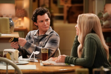 The February 13 episode of Georgie & Mandy’s First Marriage is titled “A House Divided” and as a special bonus, there are not one but two guest stars from Young Sheldon in it! First, Zoe Perry returns as Georgie’s mother Mary Cooper; then, we also have Matt Hobby making a return appearance as Pastor Jeff from the Young Sheldon show. Here’s a description for “A House Divided;” photos can also be found below.