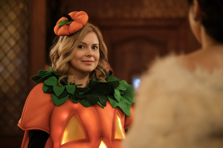 “Halloween 3: The Guest Who Wouldn’t Leave” – Pete’s ex-wife, Carol (Caroline Aaron), shows up at Woodstone Mansion during Sam and Jay’s Halloween party, where they’re trying to impress some cool friends (John Reynolds and Christine Ko). Also, the ghosts hope to bring Flower back with a seance, on the CBS Original series GHOSTS, Thursday, March 7 (8:30-9:00 PM, ET/PT) on the CBS Television Network, and streaming on Paramount+ (live and on demand for Paramount+ with SHOWTIME subscribers, or on demand for Paramount+ Essential subscribers the day after the episode airs)*. Pictured (L-R): Rose McIver as Samantha. Photo: Bertrand Calmeau/CBS ©2024 CBS Broadcasting, Inc. All Rights Reserved.