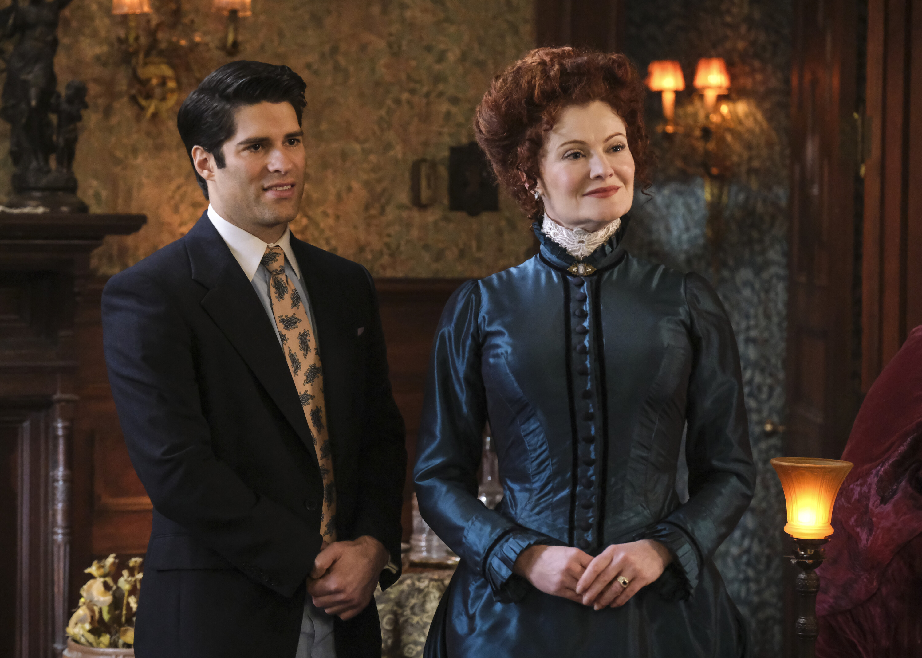 “Woodstone’s Hottest Couple” – When teen ghost Stephanie (Odessa A’zion), who lives in the attic, awakens to find that her crush Trevor is now dating Hetty, she decides to sabotage all the relationships at Woodstone, on the CBS Original series GHOSTS, Thursday, April 27 (8:31-9:01 PM, ET/PT) on the CBS Television Network, and available to stream live and on demand on Paramount+. Pictured (L-R): Asher Grodman as Trevor and Rebecca Wisocky as Hetty. Photo: Bertrand Calmeau/CBS ©2022 CBS Broadcasting, Inc. All Rights Reserved.