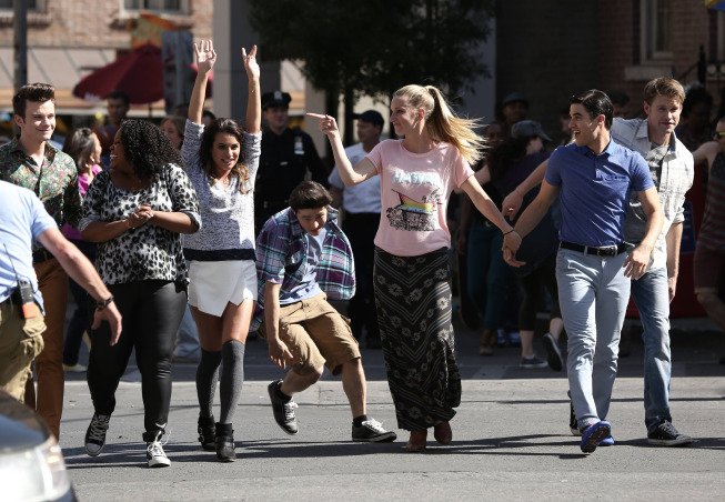 In the Season Five finale, Rachel meets a famous television writer (guest star Kristen Schaal), whose eccentric personality catches Rachel off guard. Meanwhile, Sam and Mercedes deal with the pressure of commitment as their careers take off, and the time has finally come for Blaine’s big showcase with June Dolloway (guest star Shirley MacLaine) at NYADA in the all-new “The Untitled Rachel Berry Project” Season Finale episode of GLEE airing Tuesday, May 13 (8:00-9:00 PM ET/PT) on FOX. (GLE-520) (TV-14 D, L)